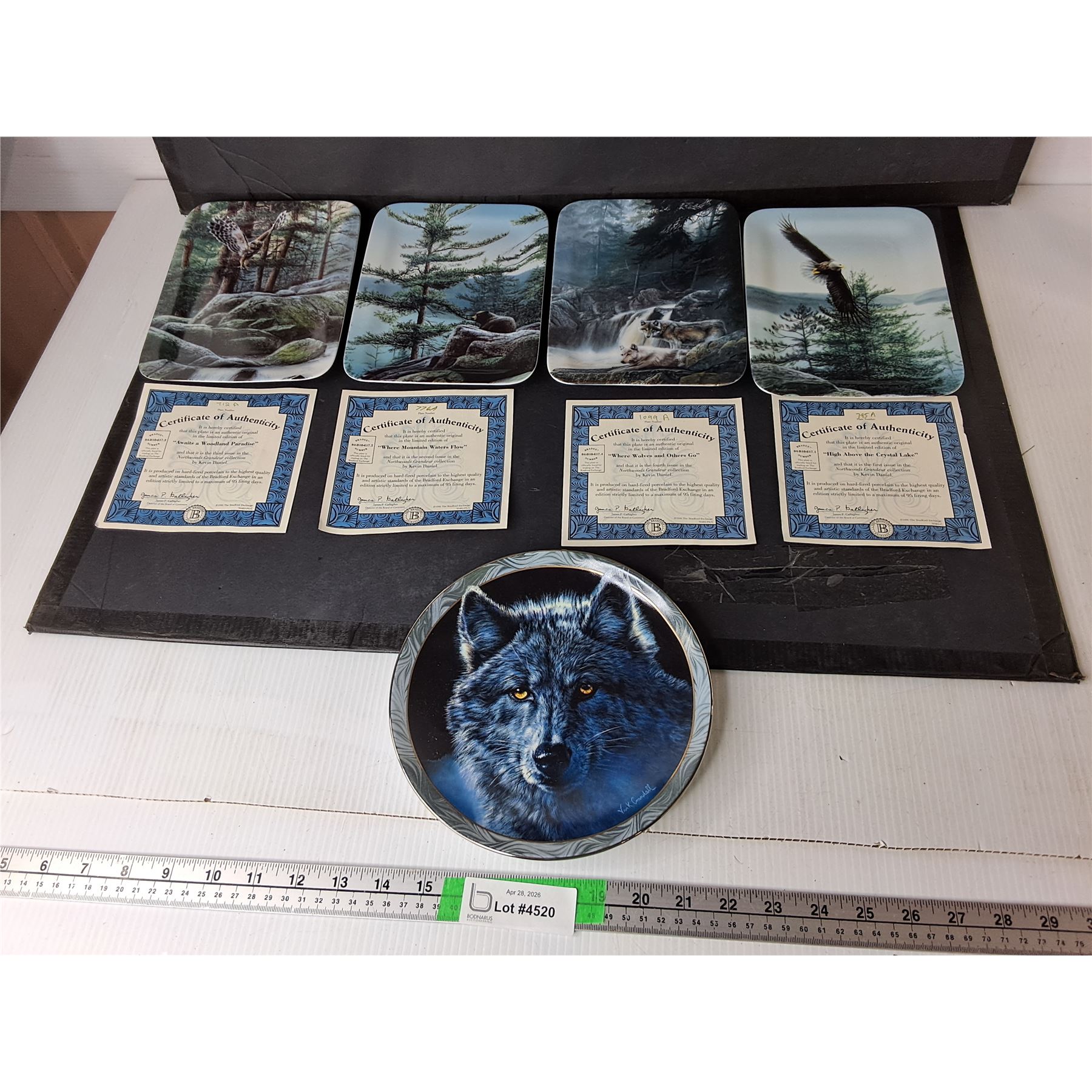 Lot 4520 (5) Nature Themed Bradford Exchange Plates Up to 8.75", Four Certificates of Authenticity