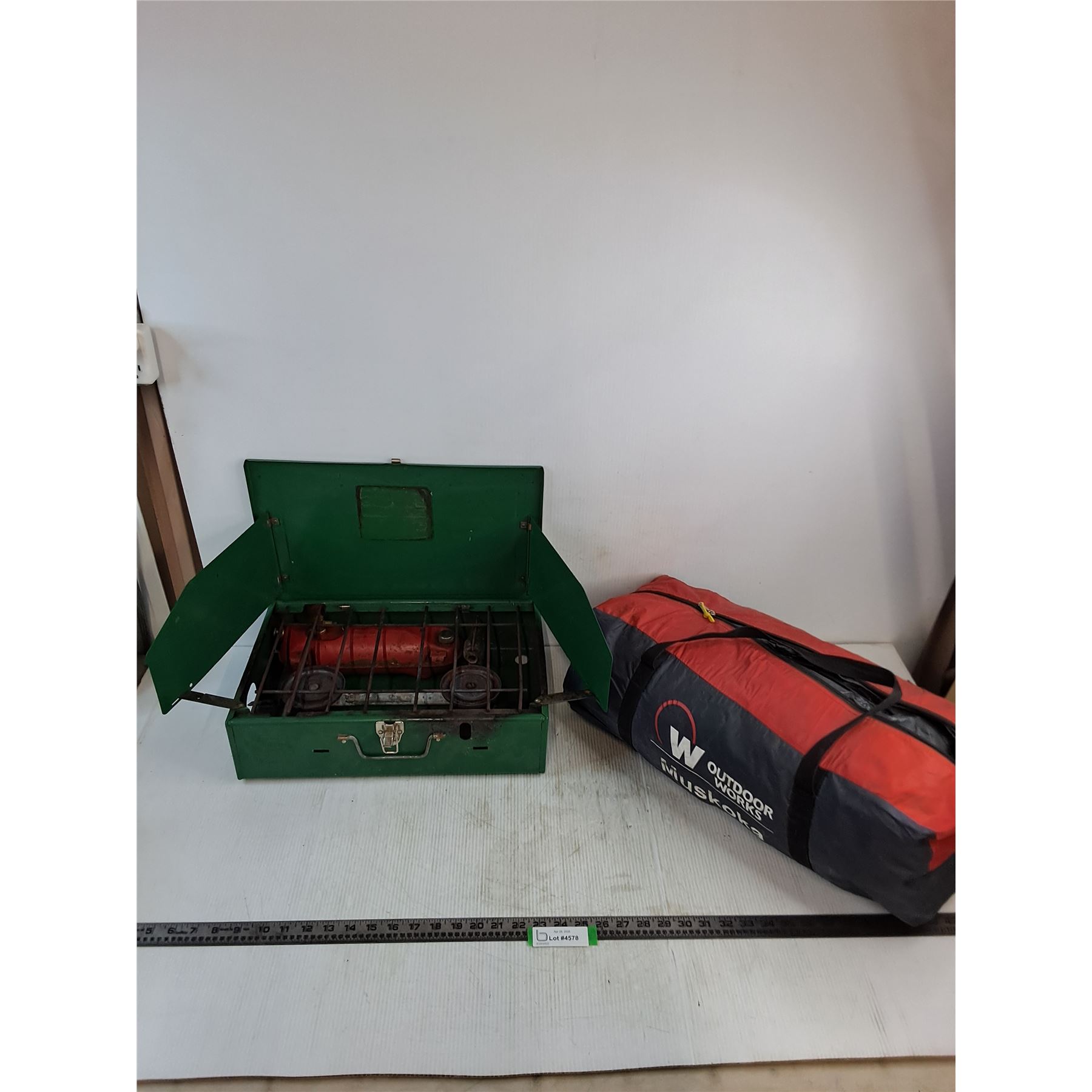 Lot 4578 Coleman 421D Camp Stove - Untested-As is, Muskoka Tent - Unknown Size-As is - Cannot Ship