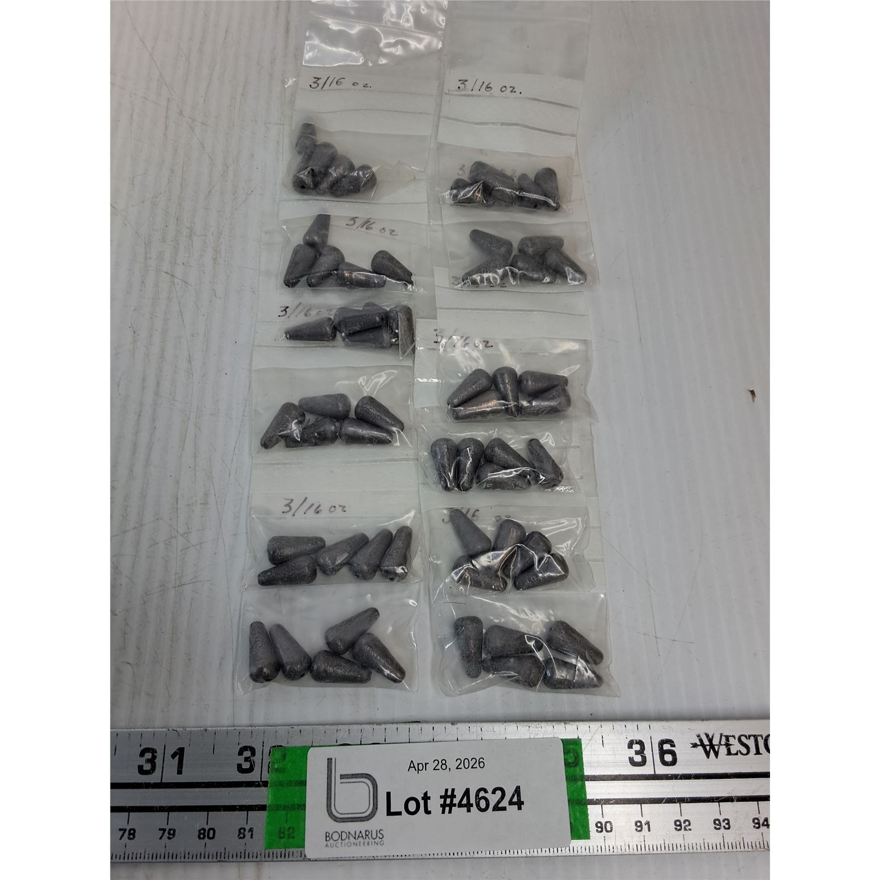 Lot 4624 (12) Pkgs. of 3/16 oz. Lead Fishing Weights