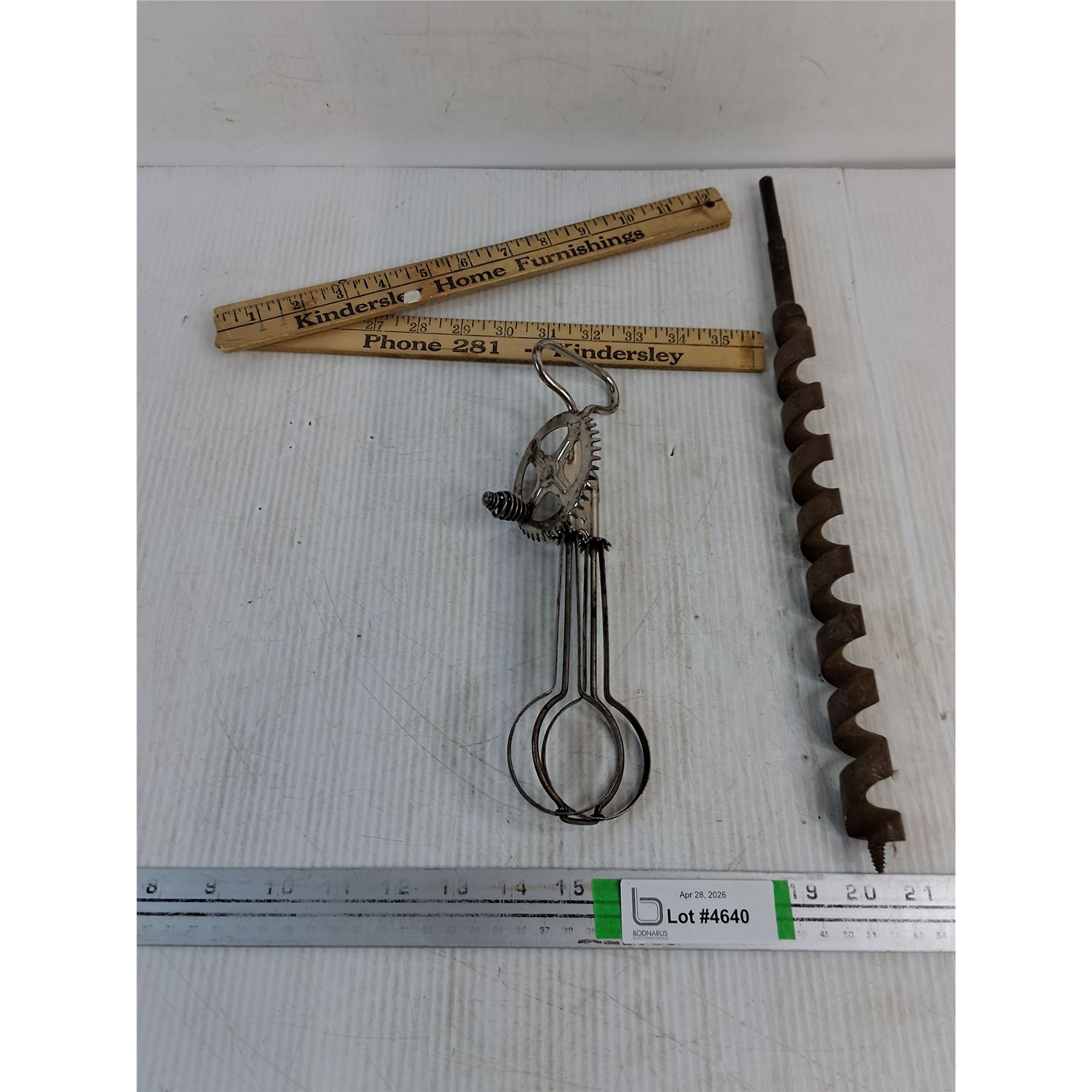 Lot 4640 Vintage Folding Ruler,Hand Mixer and Large Drill Bit