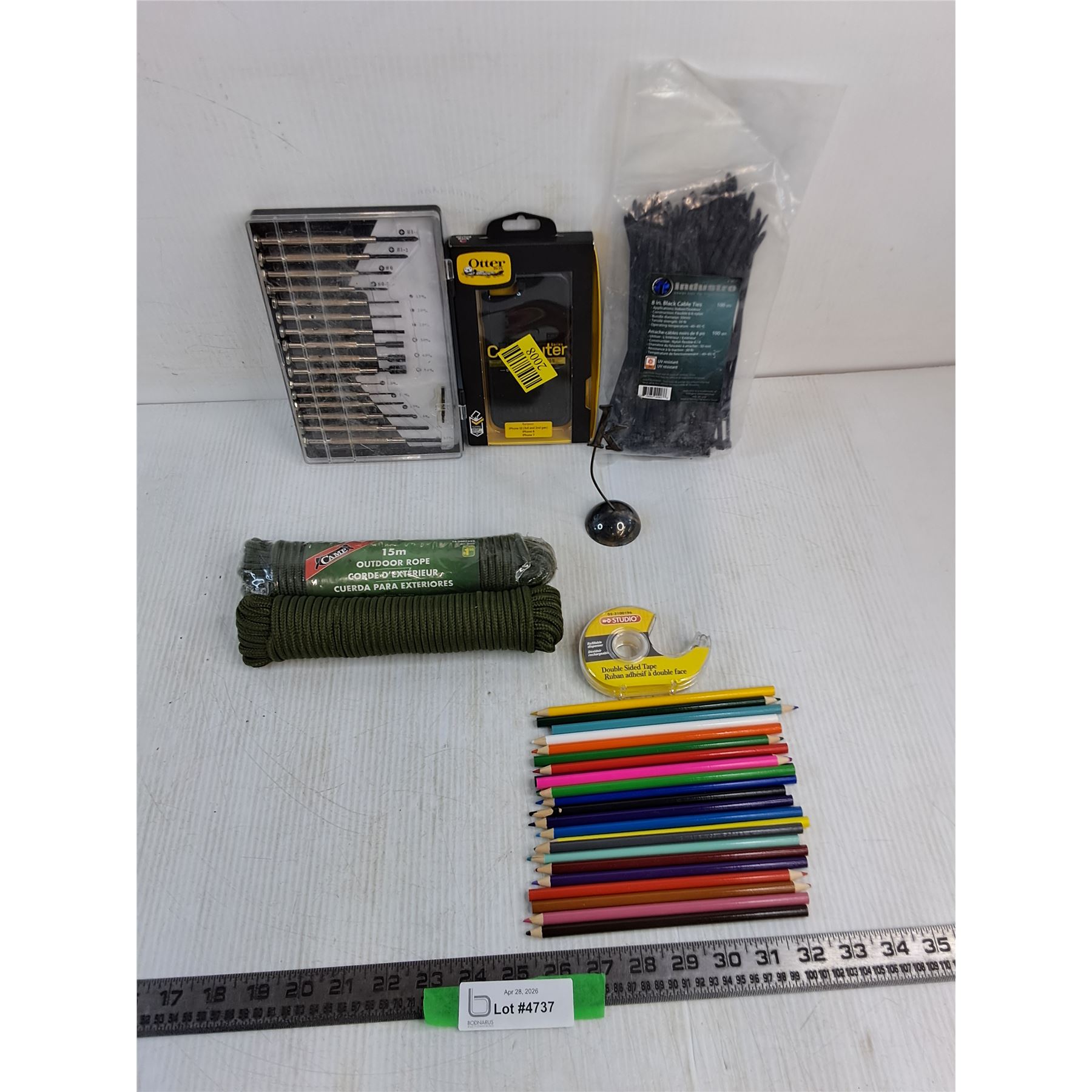 Lot 4737 Sealed (Screwdrivers, Otter Box, Rope, Cable Ties), Pencil Crayons, Misc.