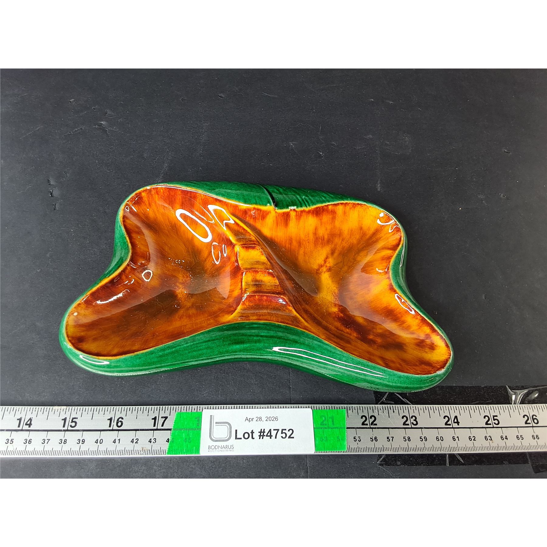 Lot 4752 Orange & Green Ceramic Ashtray 8.75" x 5.5"