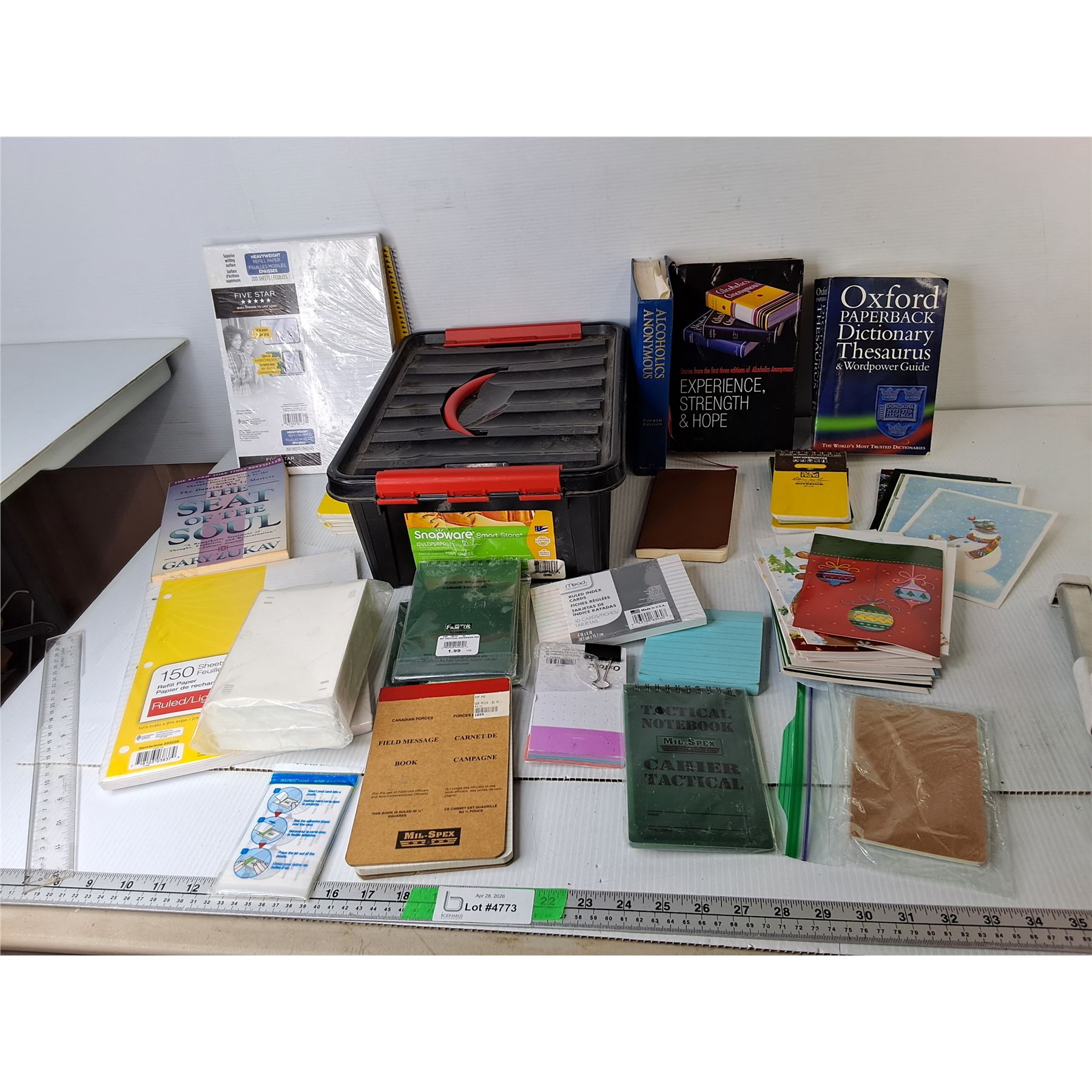 Lot 4773 Notepads, Alcoholics Anonymous Fourth Edition Book, Christmas Cards & Envelopes, Misc.