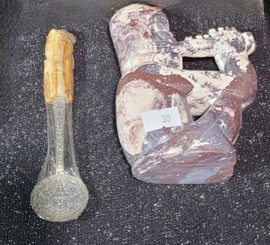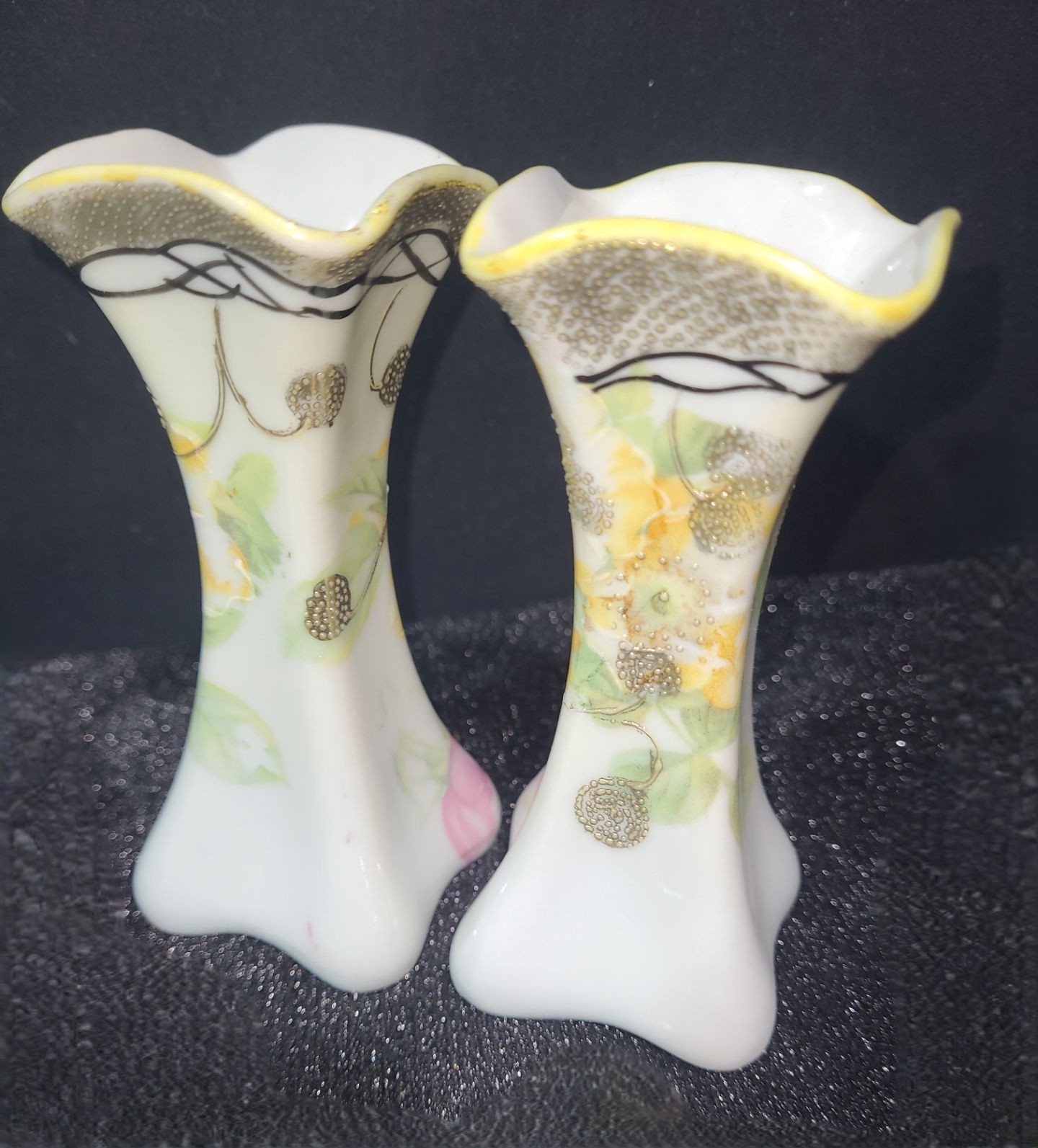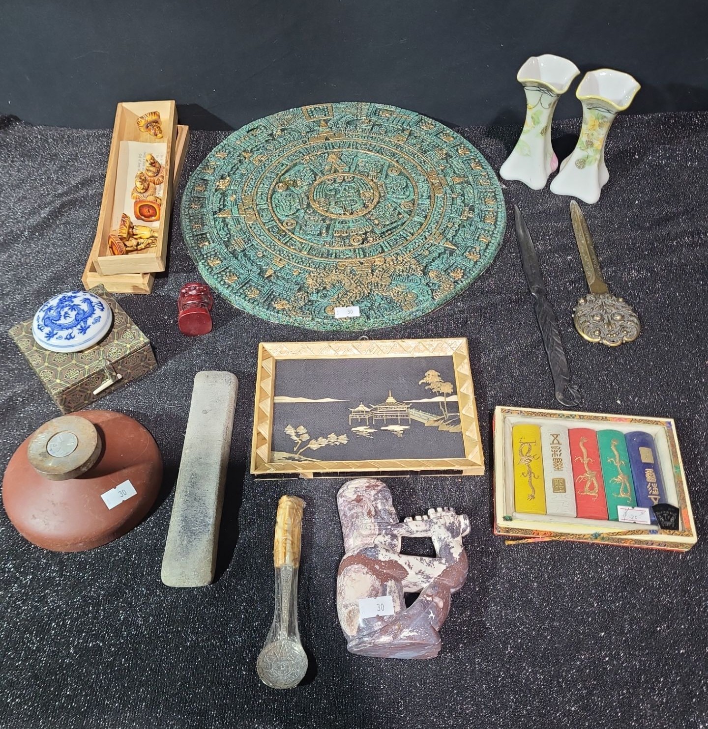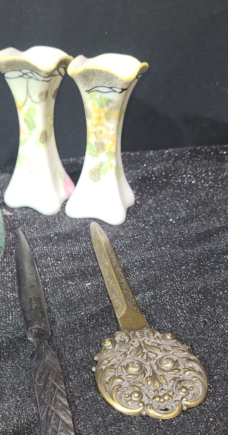 Lot 30 Green/ Gold Plate 13" Diameter, Hand-Painted Vases 4.5 T, Asian Art 7 X 5, Carving 5 T and More!