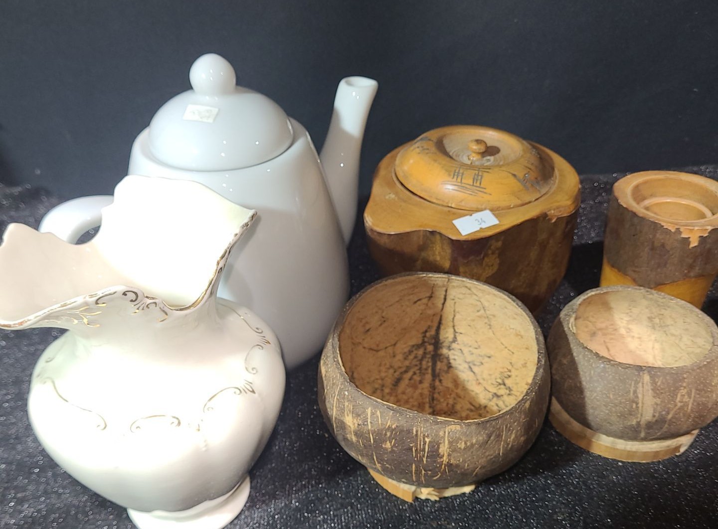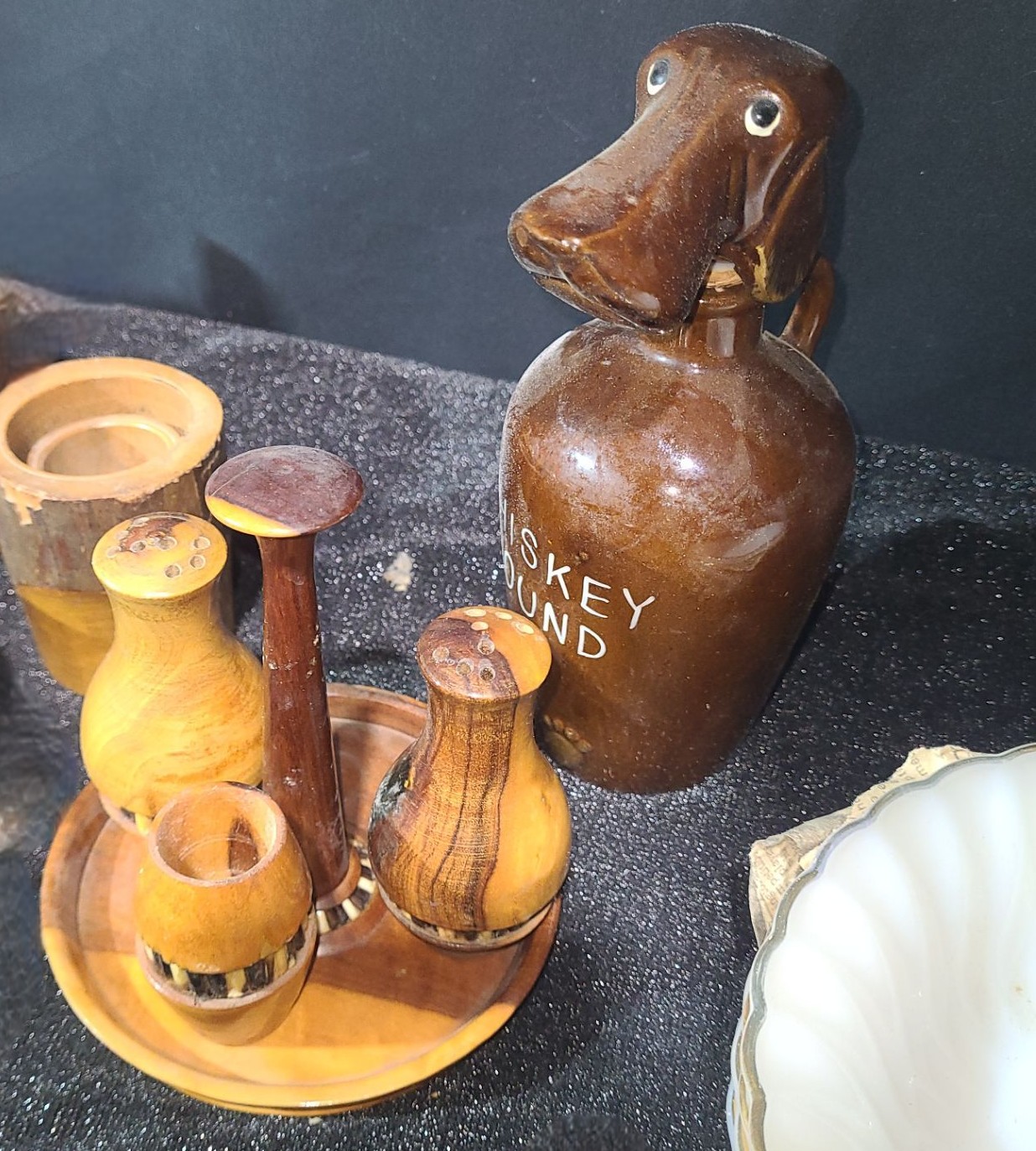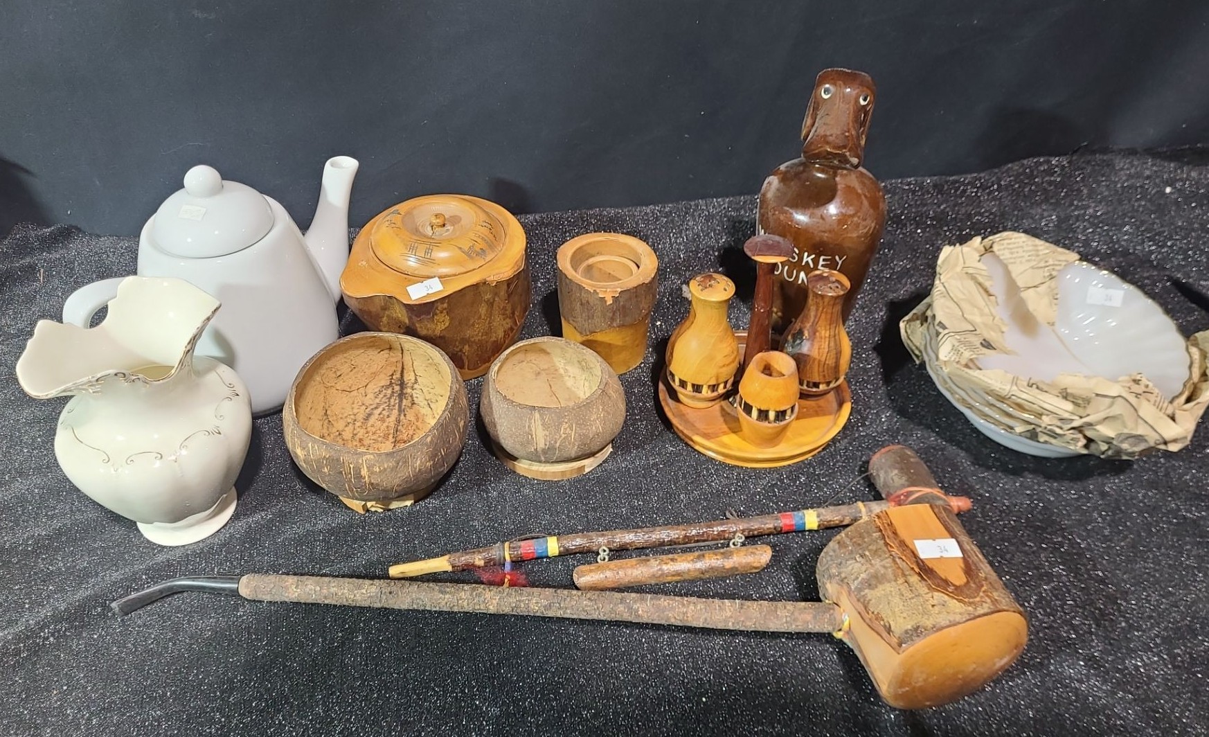 Lot 34 Victor Vase 5.5 T, Whiskey Hound Jug 8 T, Fire King Bowls, Pipes- Longest: 3" Diameter Bowl X 18.5 L