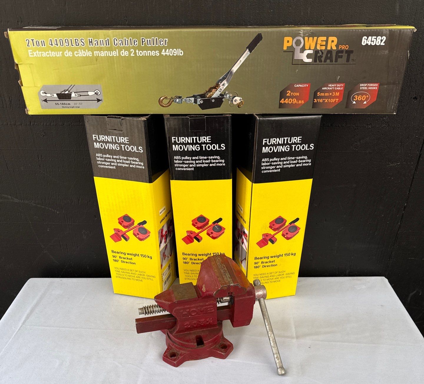Lot 21 Powercraft 2 Ton Hand Cable Puller Portable Bench Vise & Furniture Moving Tool Sets