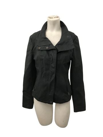 X-men: Apocalypse (2016) - Storm (Alexandra Shipp) full leather, dark charcoal, gray zip up moto jacket with fabric under the arms. From the set of production.