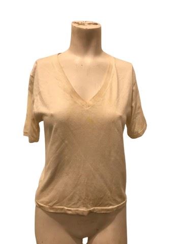 Adaptation. (2002) - Susan Orlean (Meryl Streep) screen worn, tan/khaki colored distressed button up, long sleeve shirt with a creme colored, cropped, Jockey v neck t shirt (s).