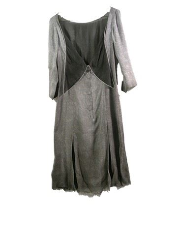 Saraghina (Stacy "Fergie" Ferguson) screen worn, hero, dark grey and light grey three quarter sleeve button up the front custom made dress. Includes wardrobe tag!