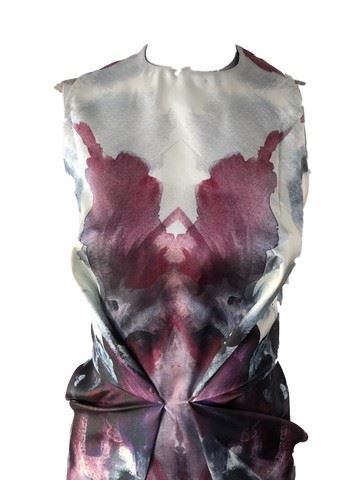 Project Runway All Stars, Season 6, Episode 6: "Thrown for a Loop by Betty Boop" -Garment # 676- Designer: Fabio. Fabio designed a short, fitted, sleeveless formal mini dress with purple, black and white patterned fabric that appears as if it was spilt and dried liquid onto the dress. The sides have a pintuck design that are sewn to the dress in the front. Fabio remained in the competition with this design.