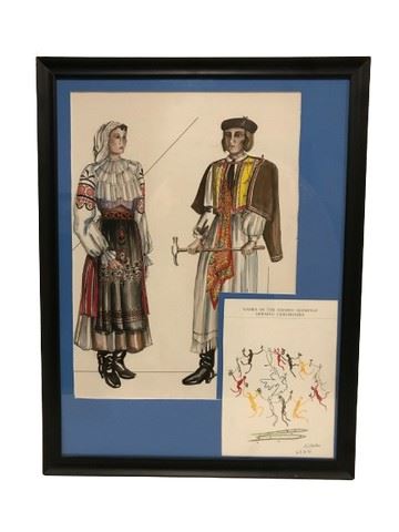 Framed print of an artwork, possibly done by Max Karl Tilke. Max Karl Tilke (6 February 1869, Breslau – 2 August 1942, Berlin) was a German costume designer, ethnographer, historian of fashion design, illustrator, Kabarett artist, and painter of the Weimar Republic.