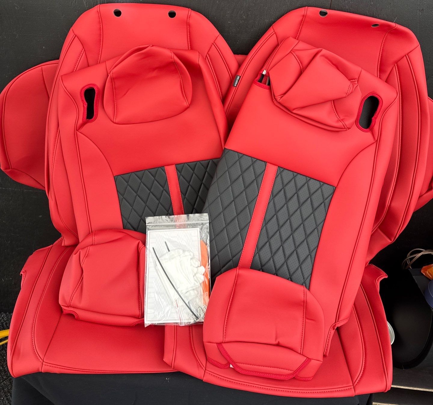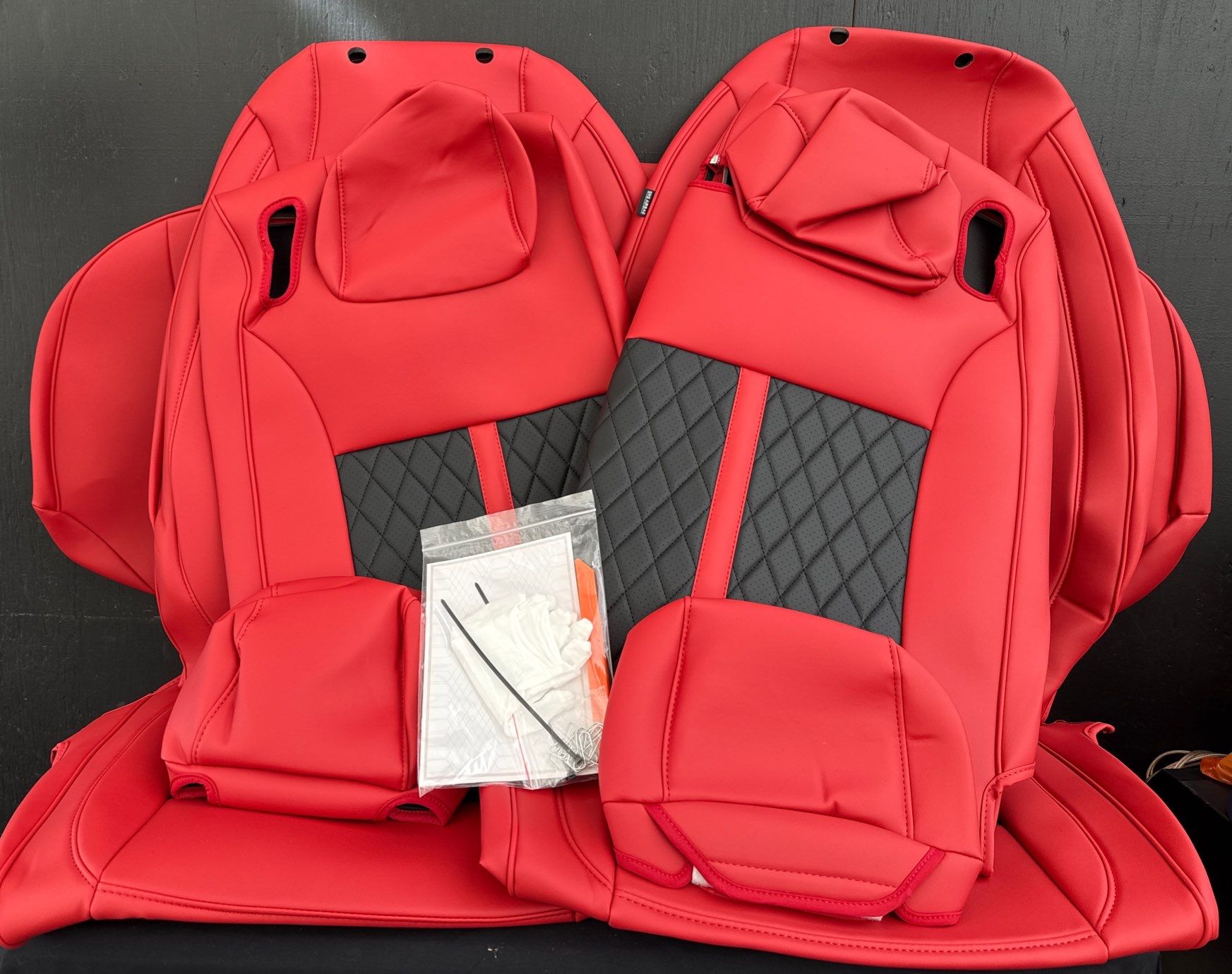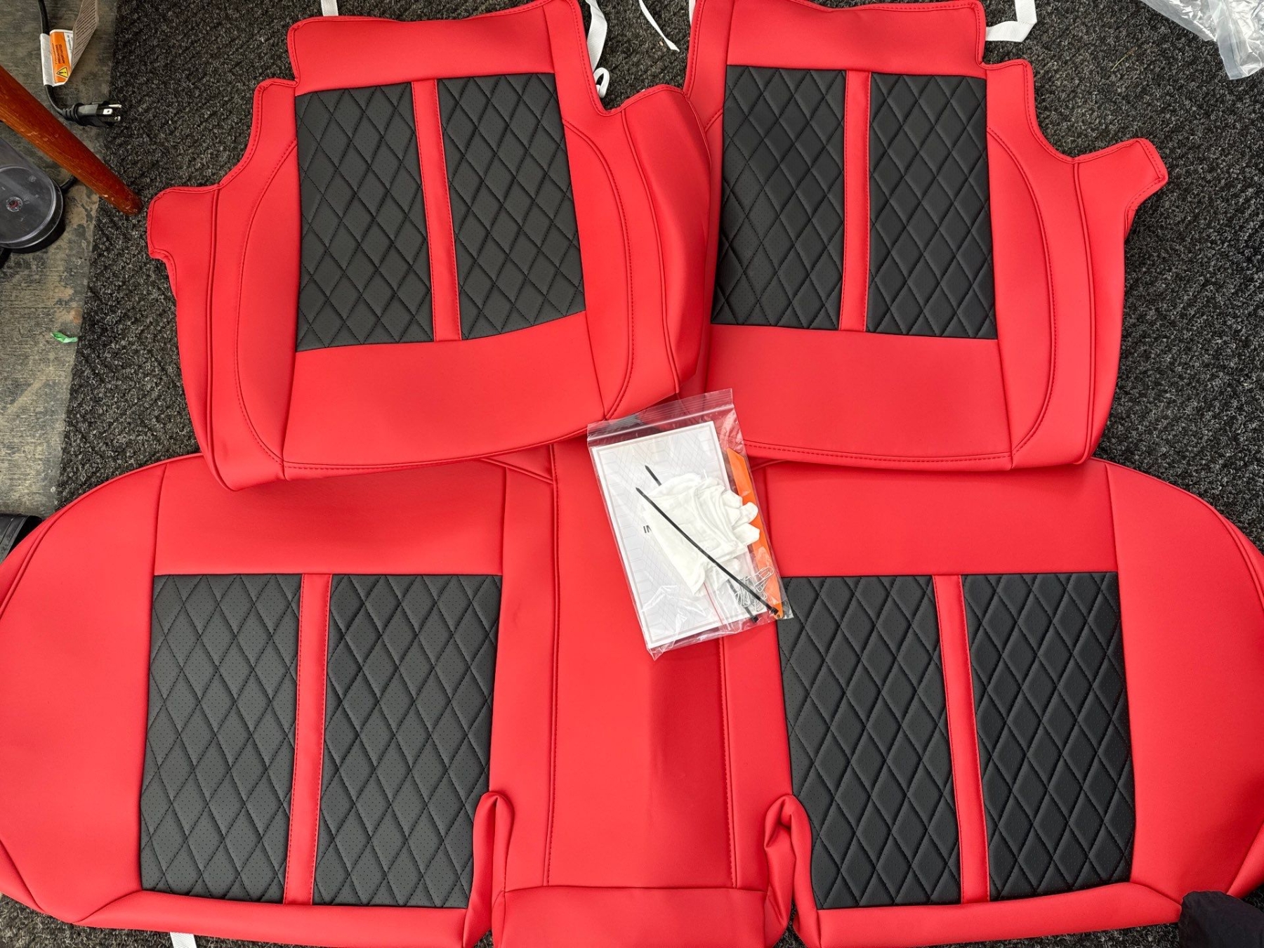 Lot 25 New Luxury Truck Seat Covers w/ Red & Black Diamond Tufting