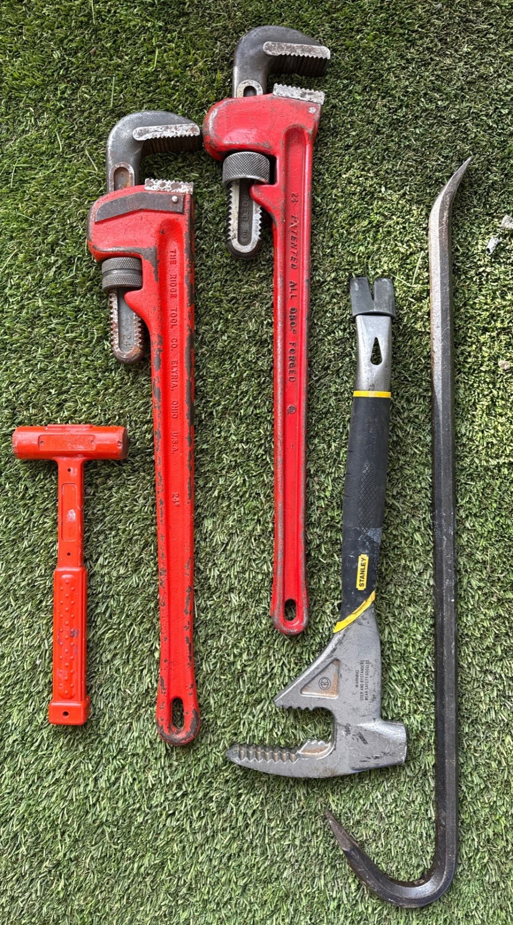 Lot 31 24" Heavy Duty Pipe Wrenchs XL Pry Bar Claw Hammer & more