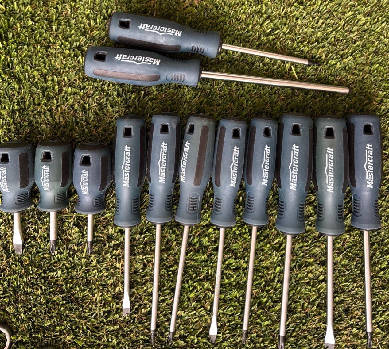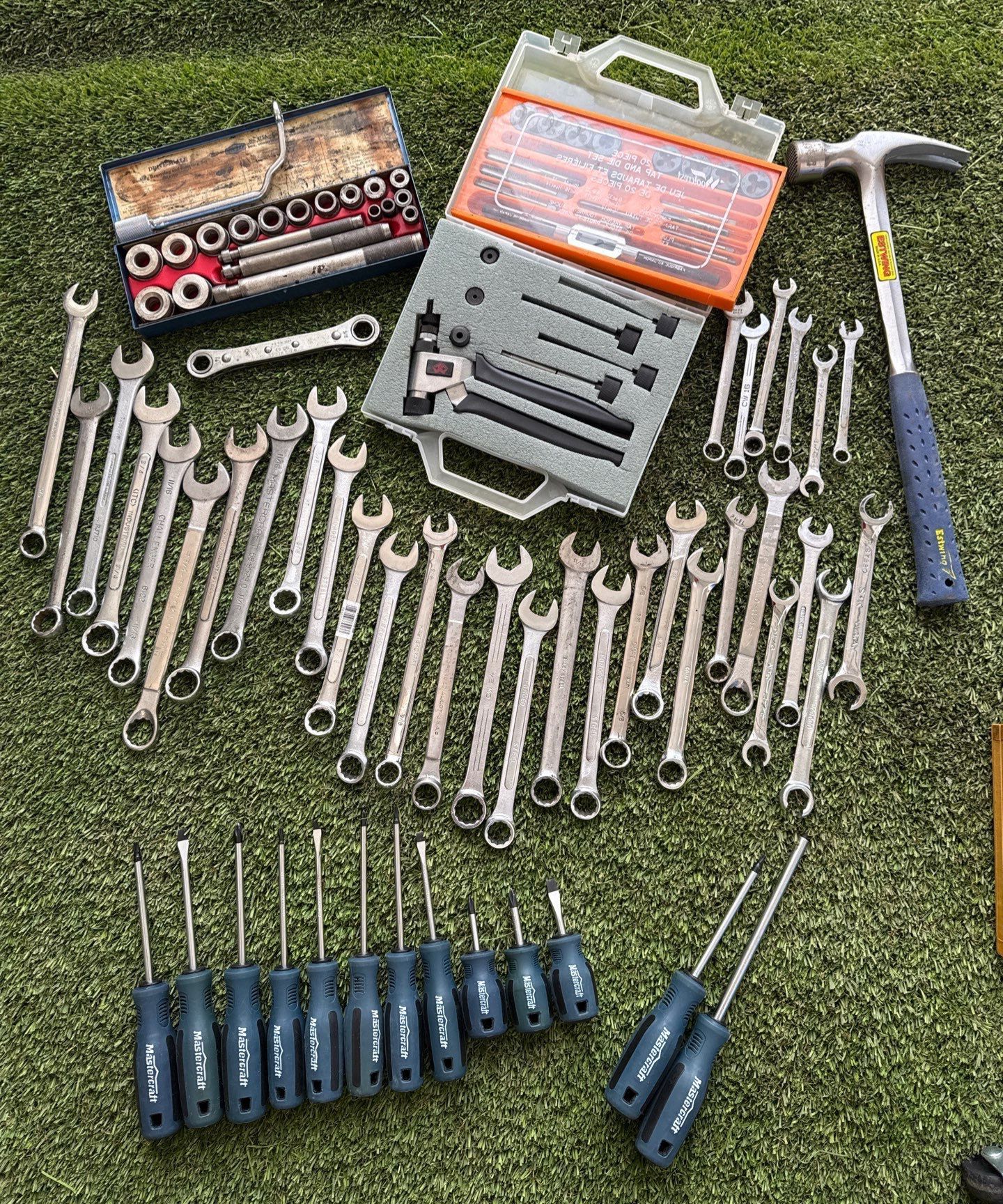 Lot 34 Hand Tool Assortment - Mastercraft Screwdrivers Tap & Die Set Rivet Tool & More