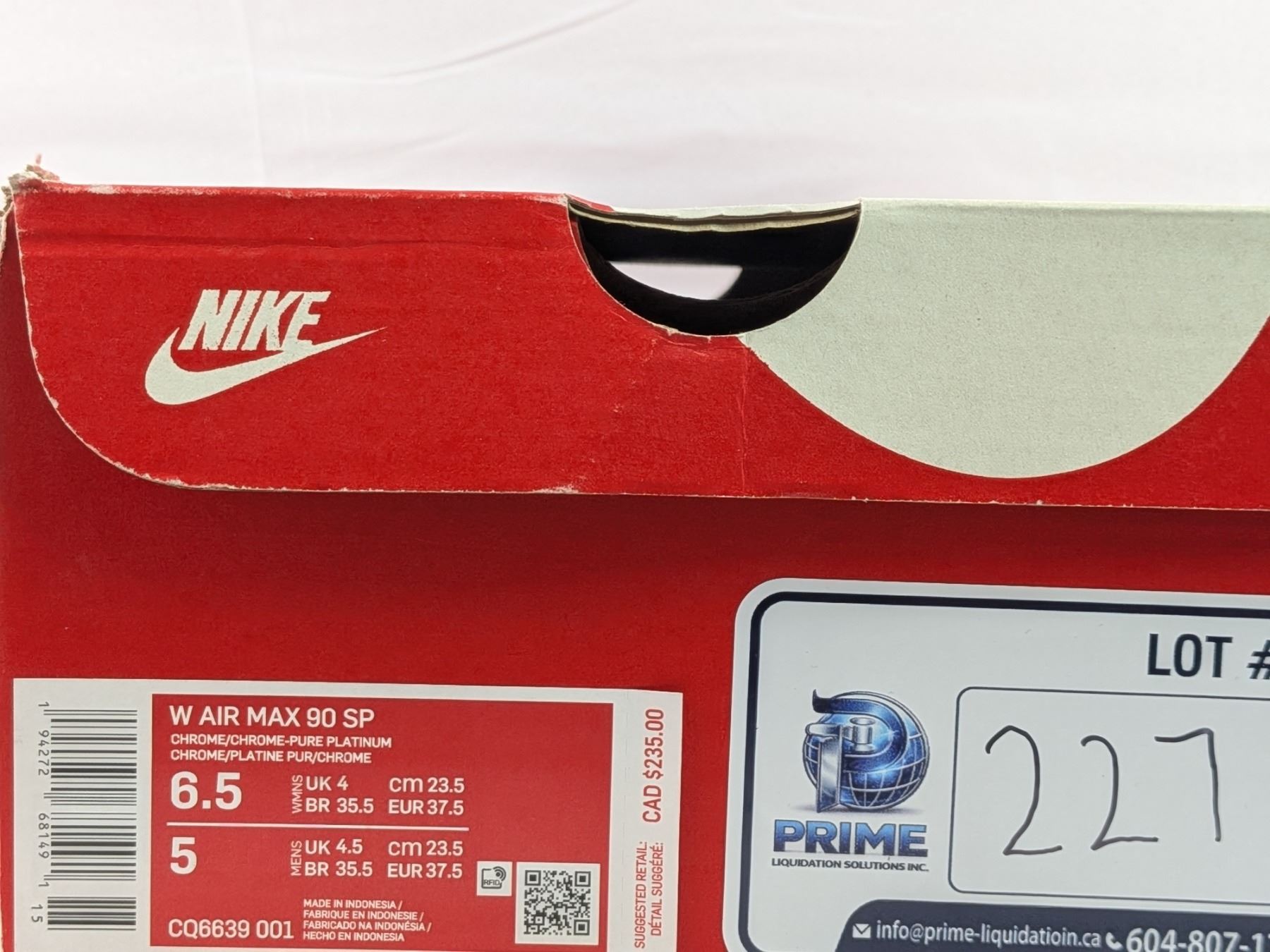 Lot 227 Nike W Air Max 90 SP (Chrome- Pure Platinum)