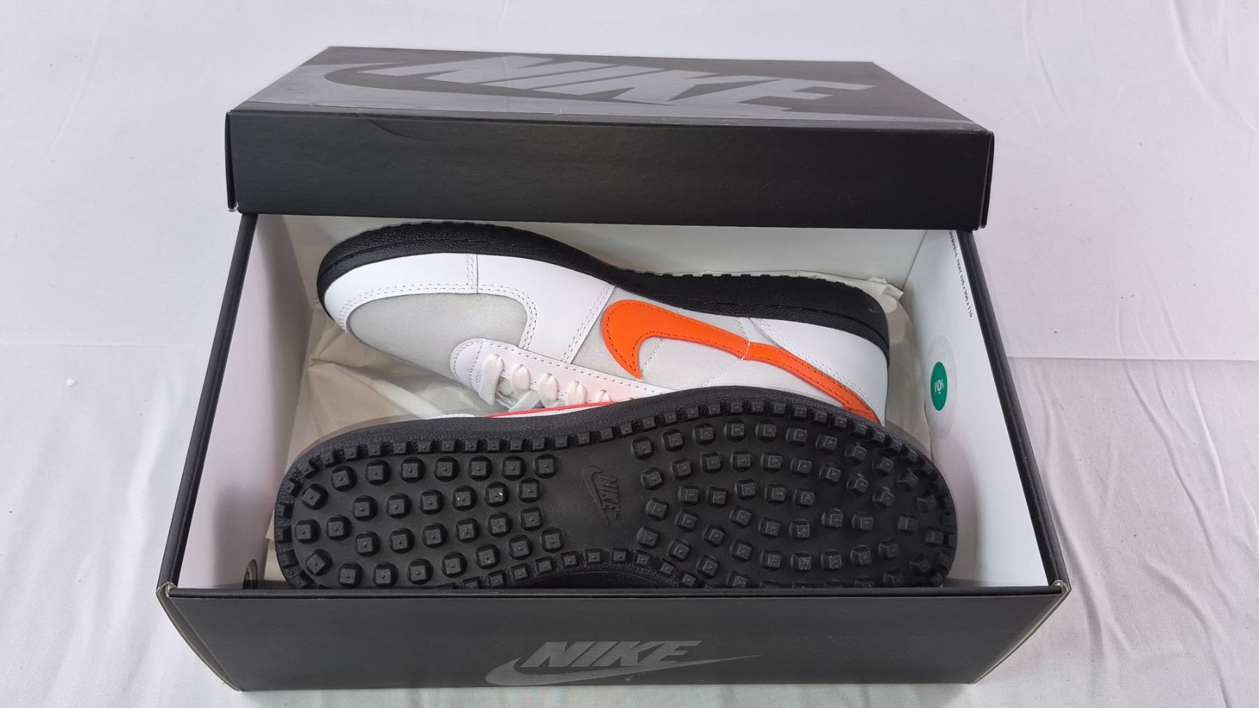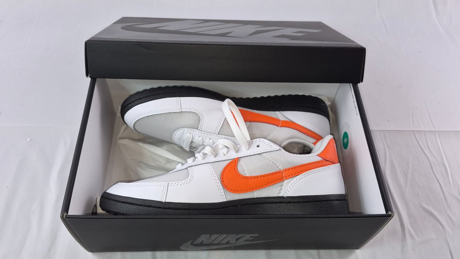 New Pair of Nike Field General 82 SP (White/Orange Blaze-Black) Size- Men's 8, Women's 9.5 (030)