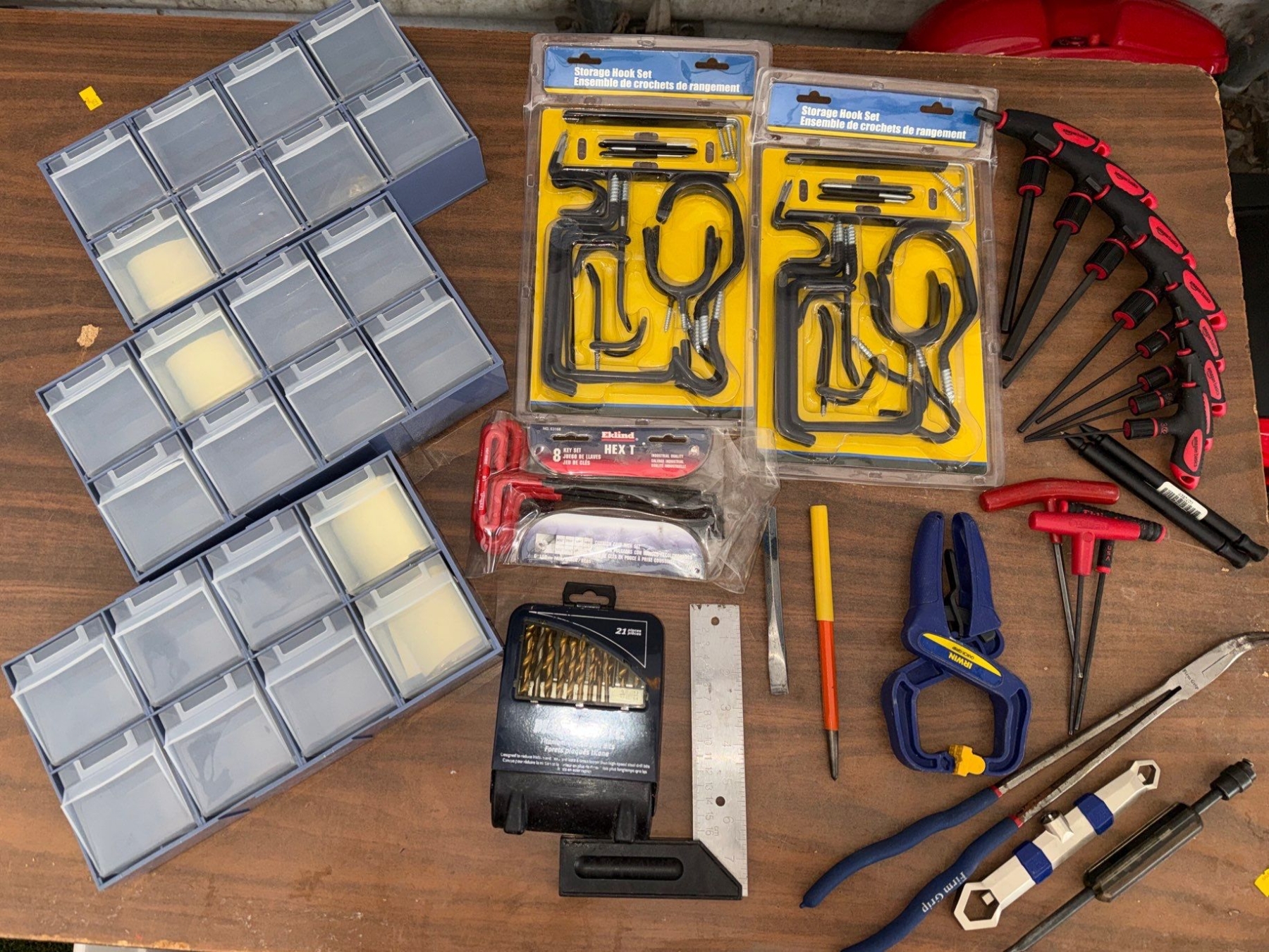 Lot 43 Garage Organizers Utility Hooks Drill Bits Hand Tools & More