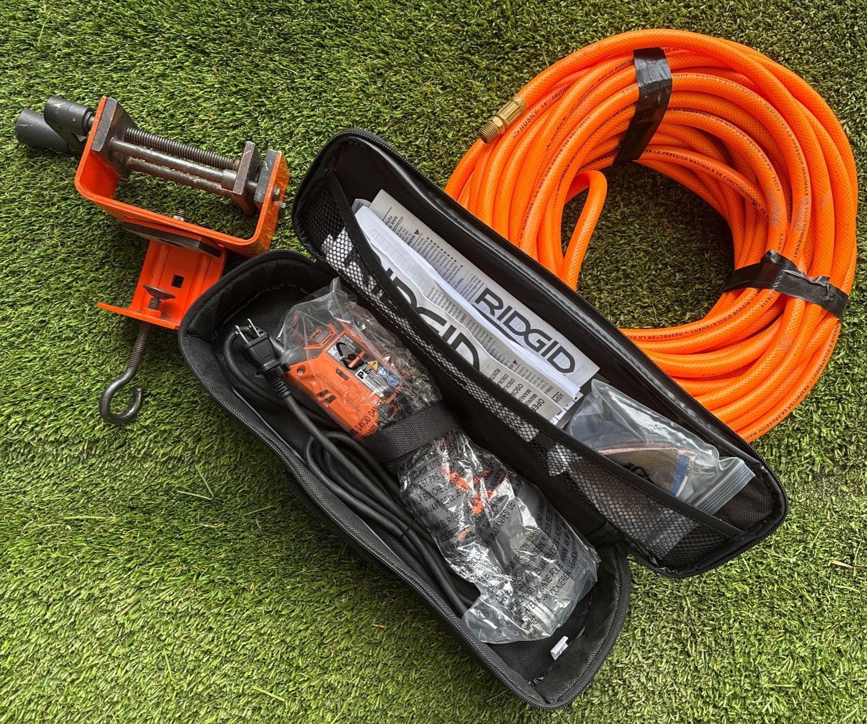 Lot 47 New RIGID Multi-Tool In Soft Travel Case w/ Portable Shop Vise & Air Hose