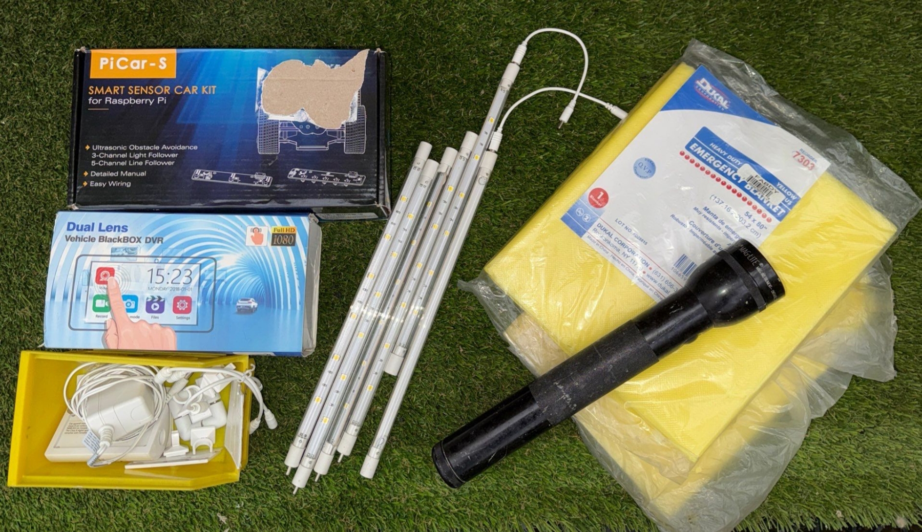 Lot 52 Dual Lens Vehicle Blackbox DVR Smart Sensor Car Kit LED Lighting Emergency Blanket & More