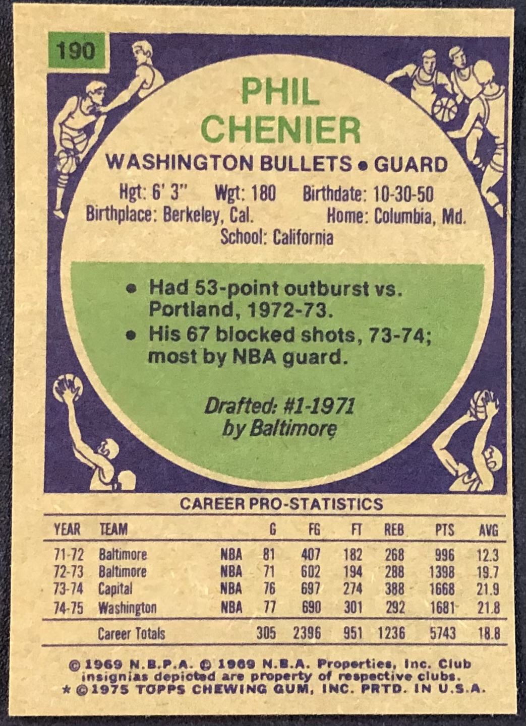 Lot 79 1975-76 TOPPS NBA PHIL CHENIER ROOKIE CARD