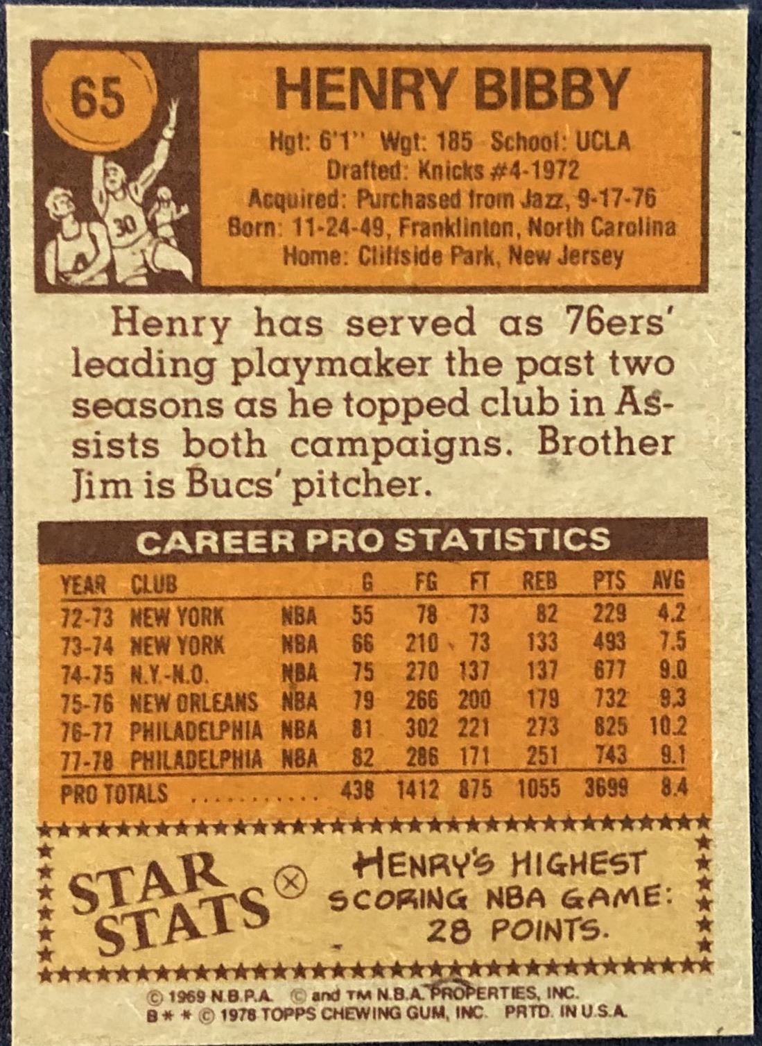 Lot 87 1978-79 TOPPS NBA HENRY BIBBY