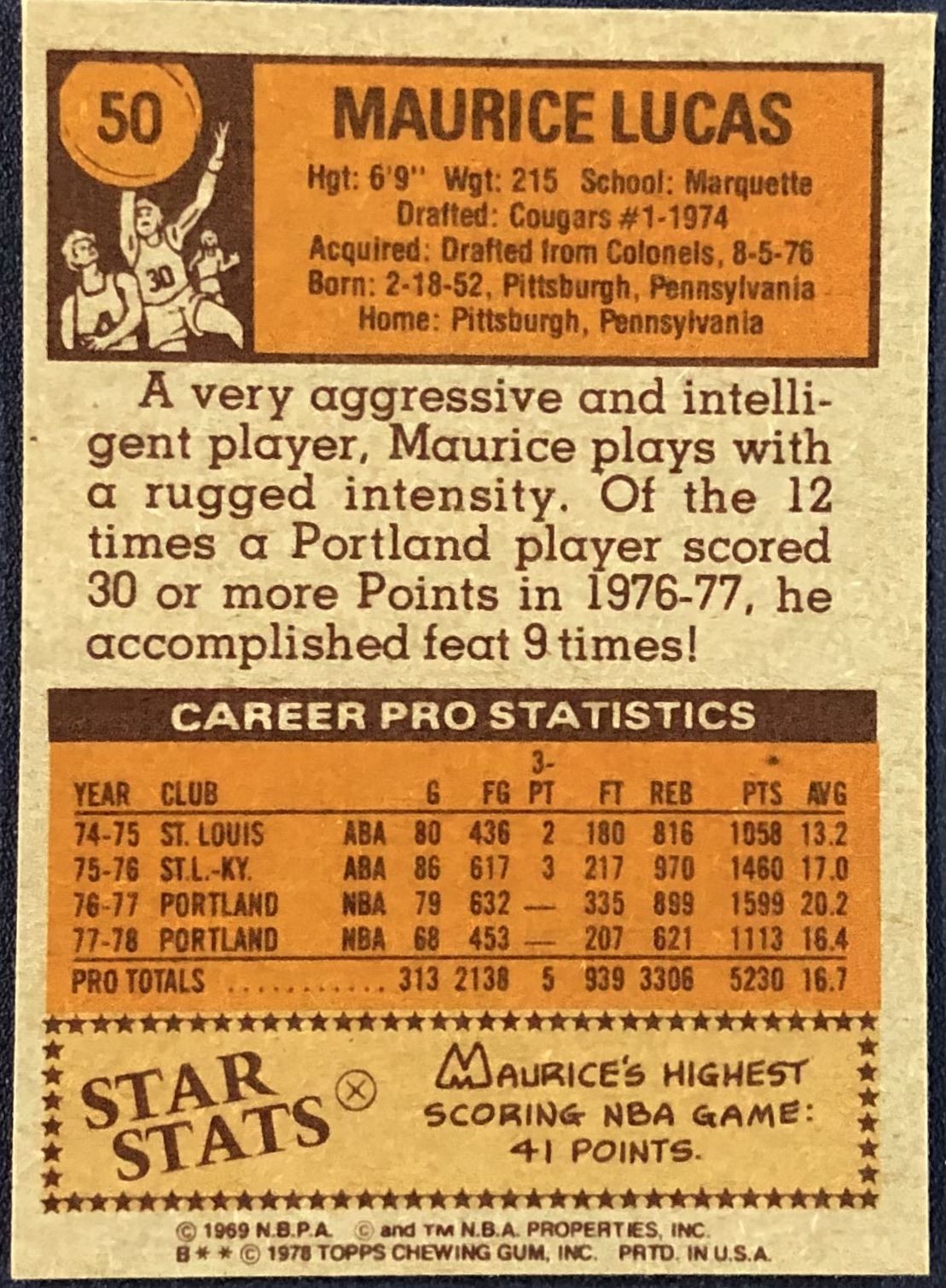 Lot 88 1978-79 TOPPS NBA MAURICE LUCAS