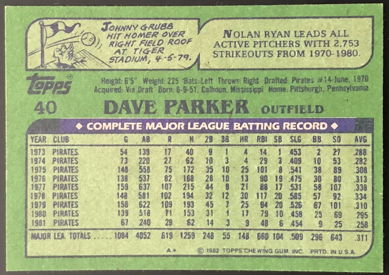Lot 114 1982 TOPPS DAVE PARKER (HOF)