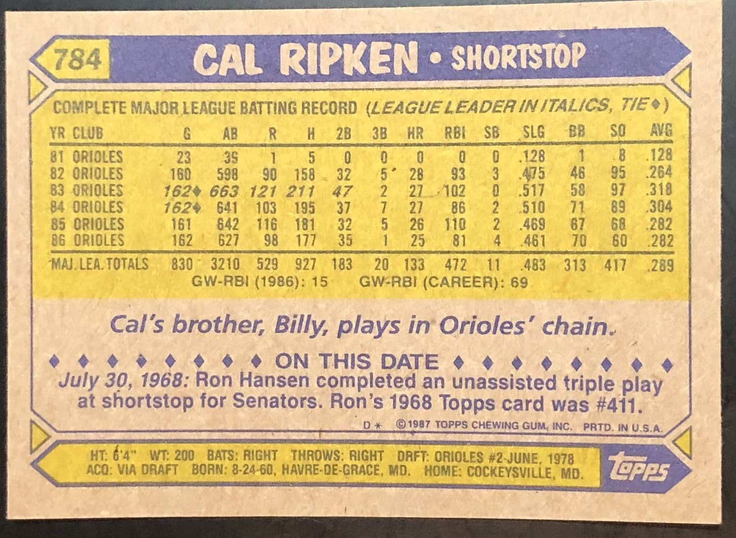 Lot 212 1987 TOPPS CAL RIPKEN JR. (HOF)