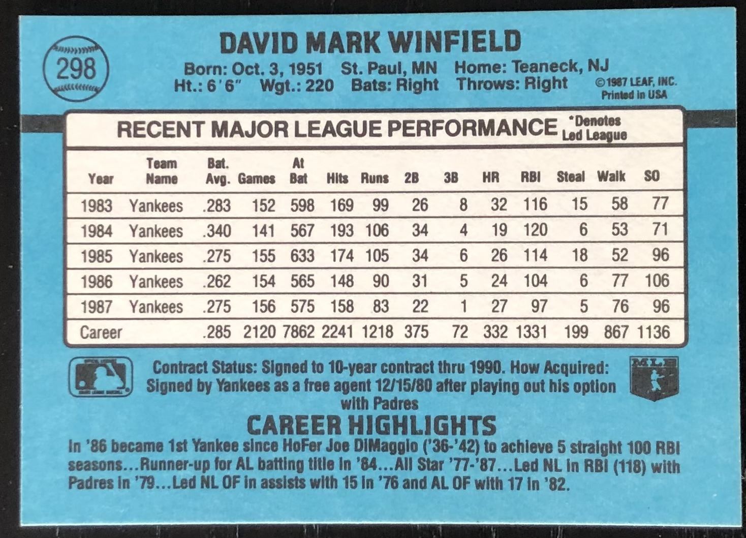 Lot 237 1988 DONRUSS DAVE WINFIELD (HOF)