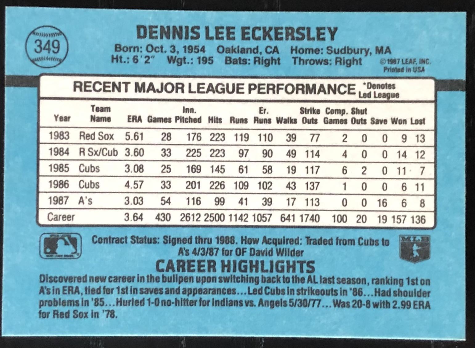 Lot 238 1988 DONRUSS DENNIS ECKERSLEY (HOF)