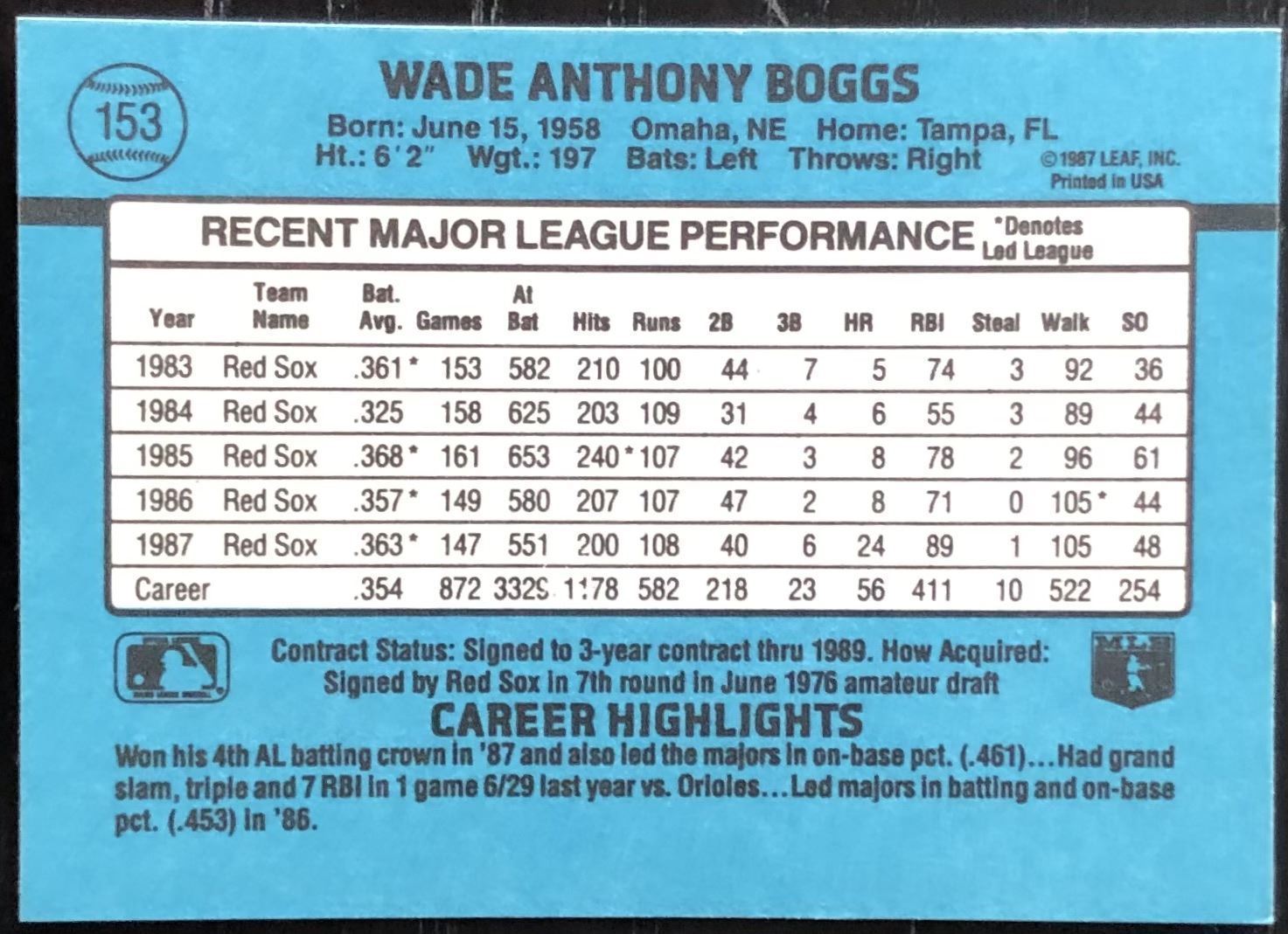 Lot 265 1988 DONRUSS WADE BOGGS (HOF)