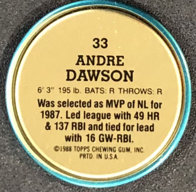 Lot 274 1988 TOPPS BASEBALL COIN - ANDRE DAWSON (HOF)