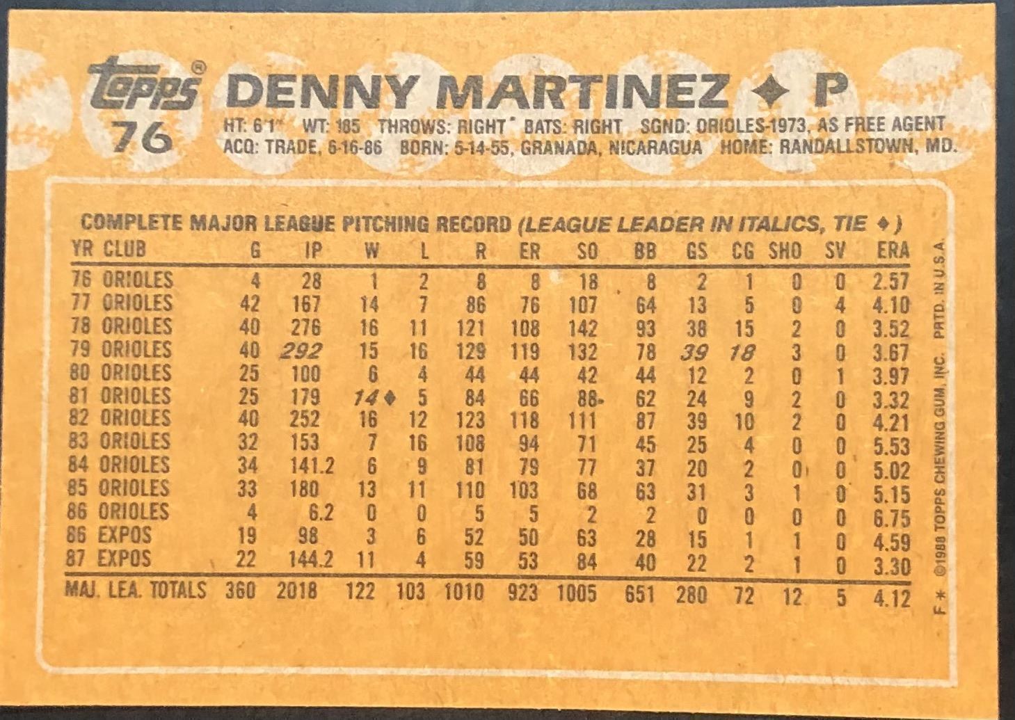 Lot 275 1988 TOPPS DENNIS MARTINEZ