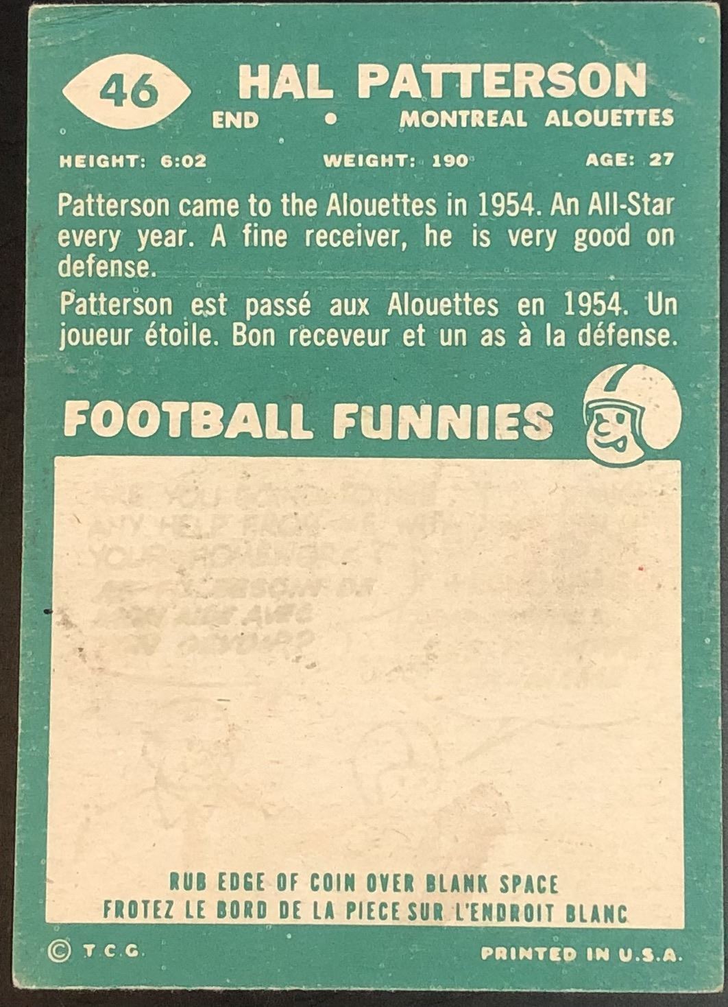 Card #46 vintage, CFL, football, OPC, hall of fame
