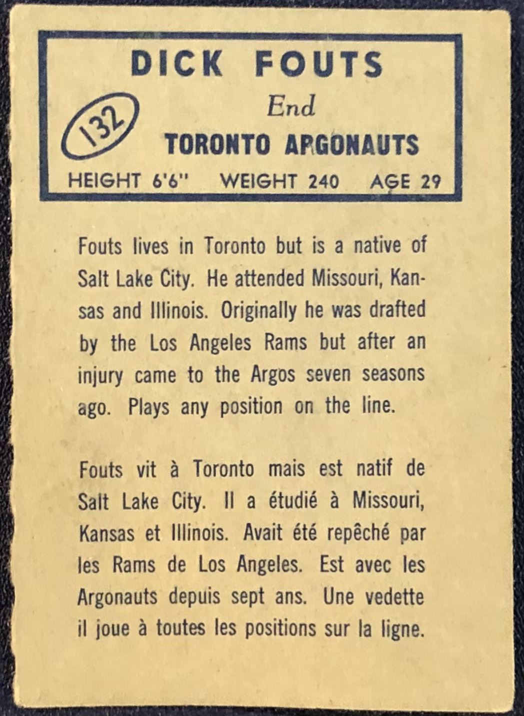 Lot 347 1962 O-PEE-CHEE CFL DICK FOUTS