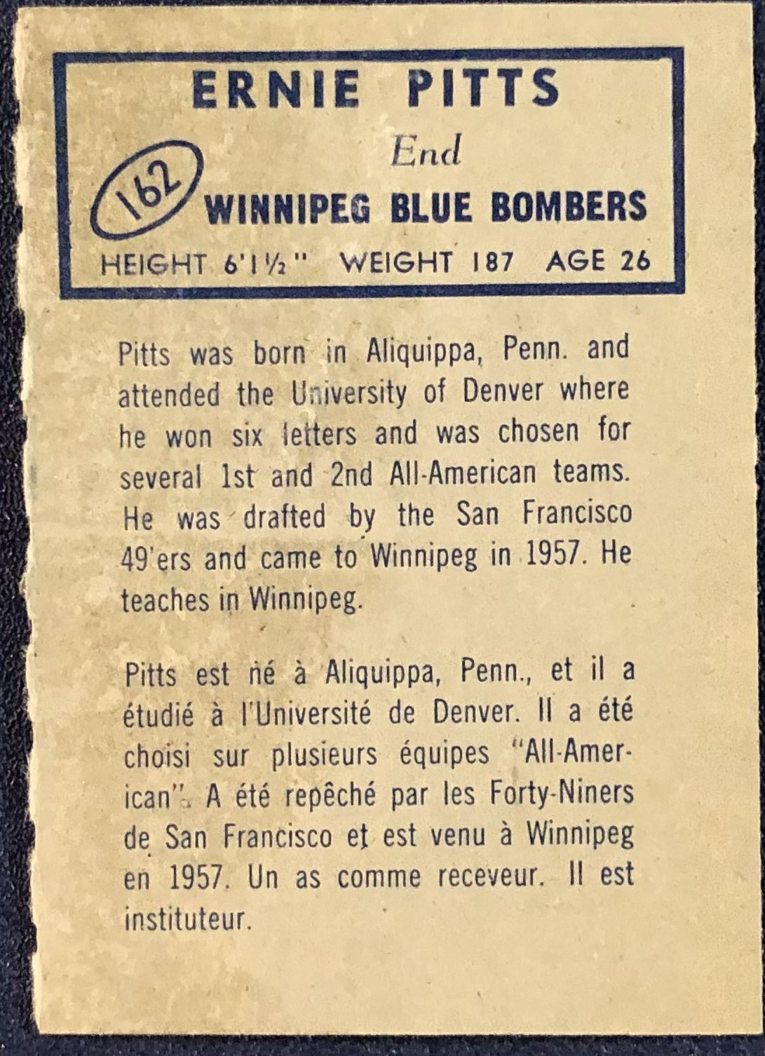 Lot 348 1962 O-PEE-CHEE CFL ERNIE PITTS (HOF)