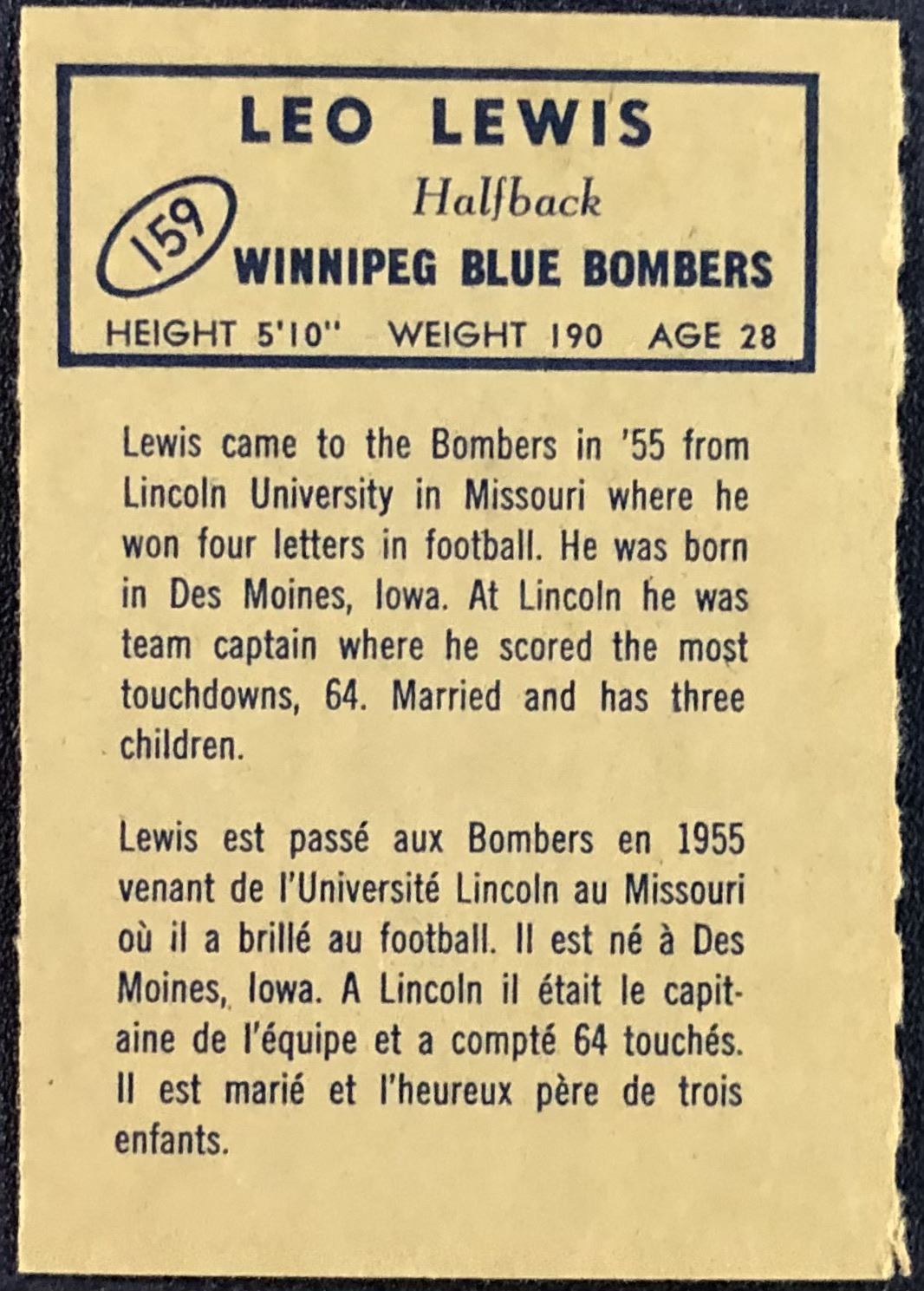 Lot 353 1962 O-PEE-CHEE CFL LEO LEWIS (HOF)