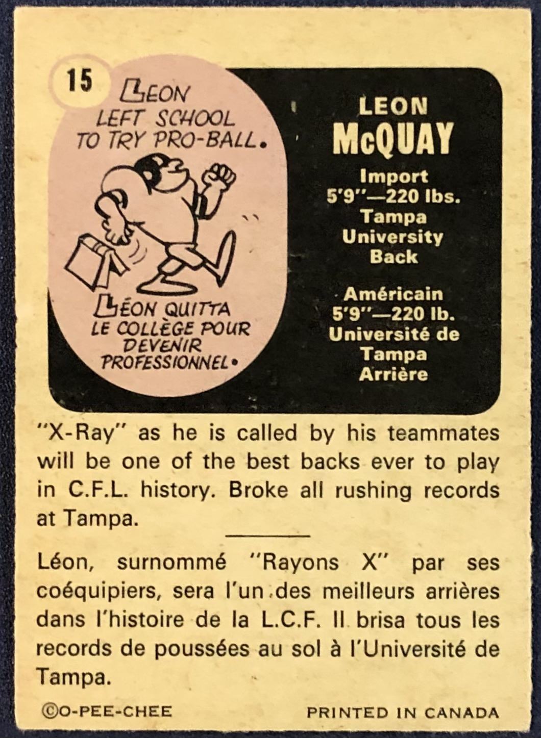 Lot 371 1971 O-PEE-CHEE CFL LEON McQUAY
