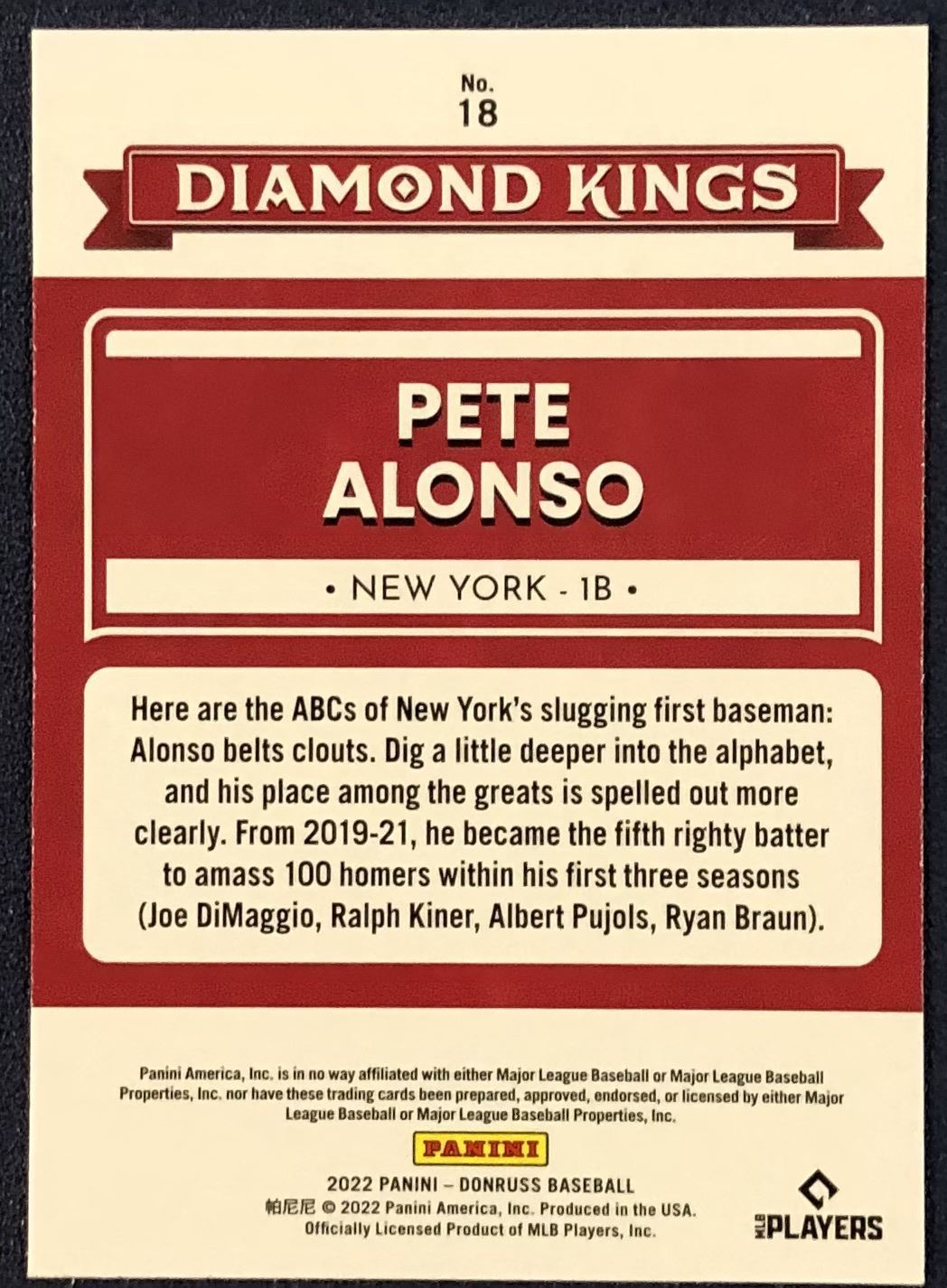 Lot 393 2022 DONRUSS DIAMOND KING PETE ALONSO