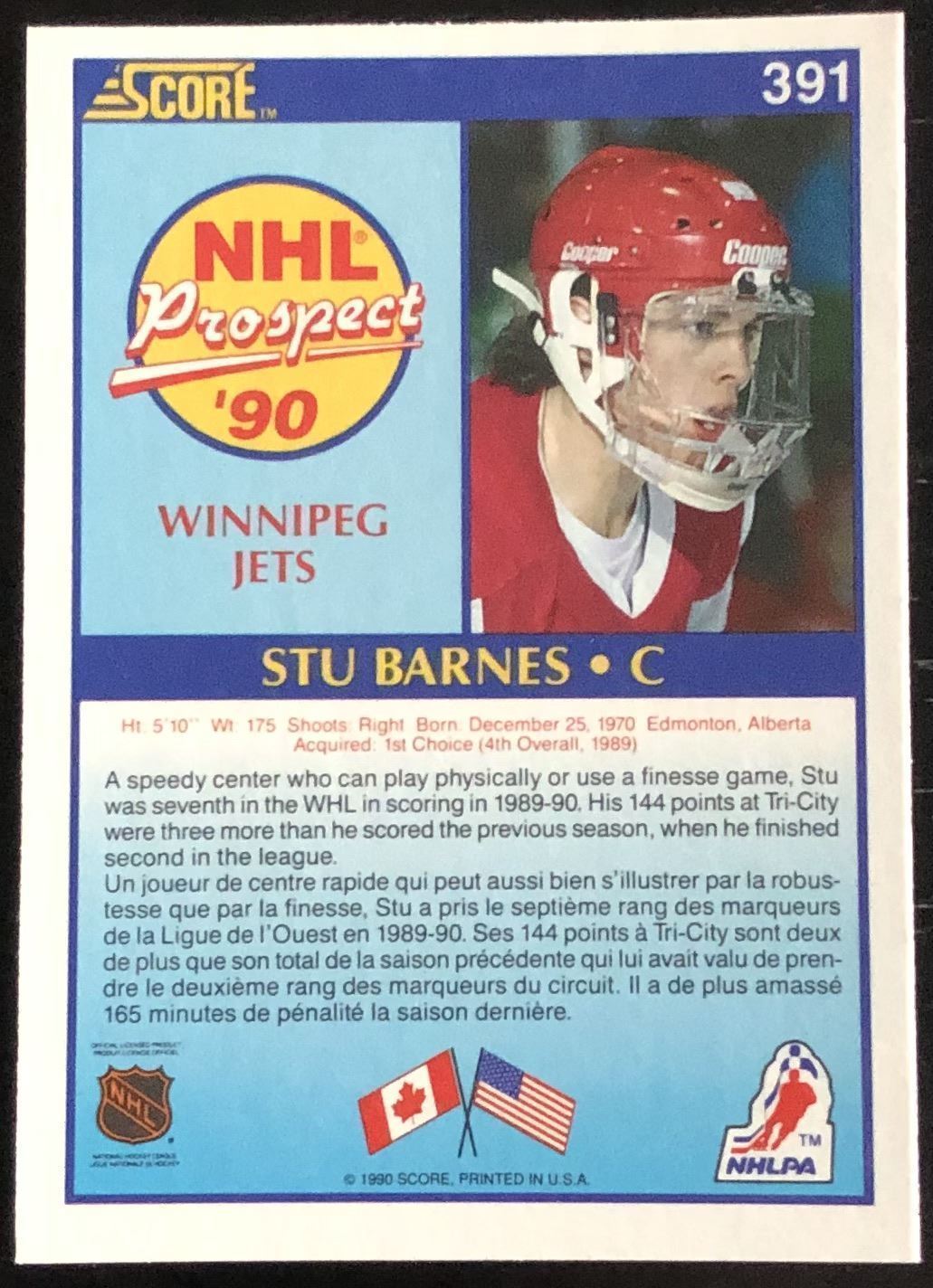 Lot 464 1990-91 SCORE STU BARNES ROOKIE CARD