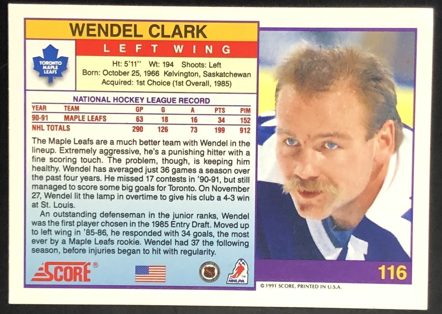 Lot 480 1991-92 SCORE U.S. EDITION WENDEL CLARK