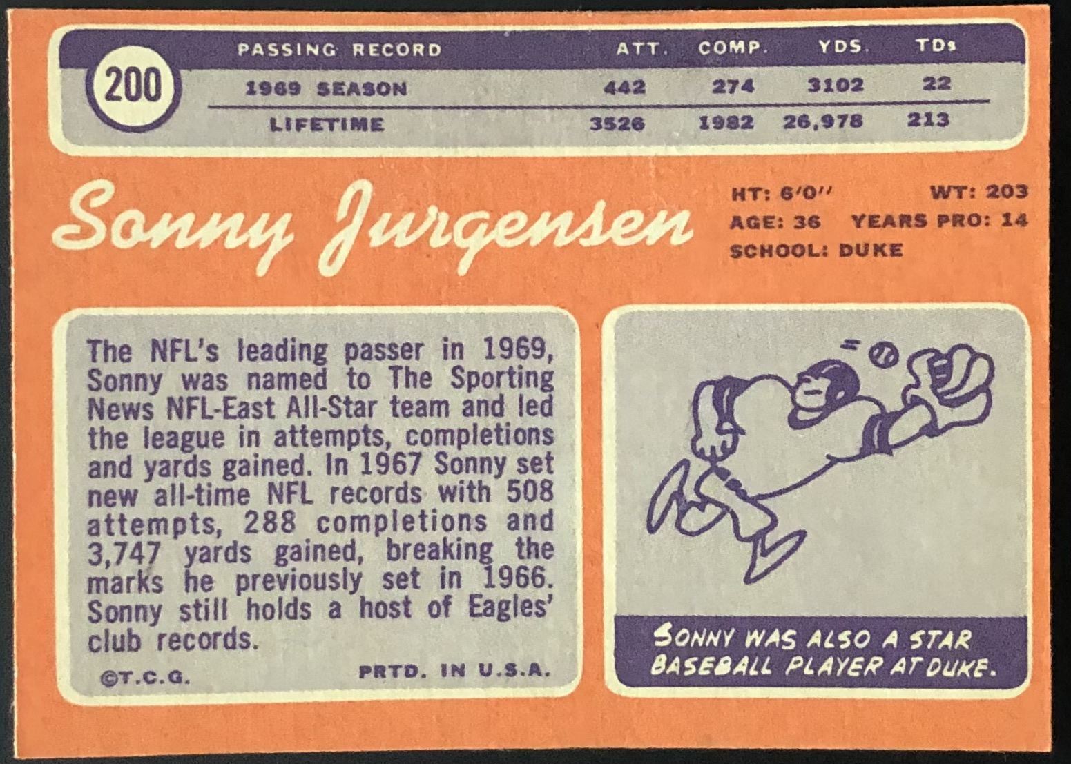 Lot 516 1970 TOPPS SONNY JURGENSEN (HOF)
