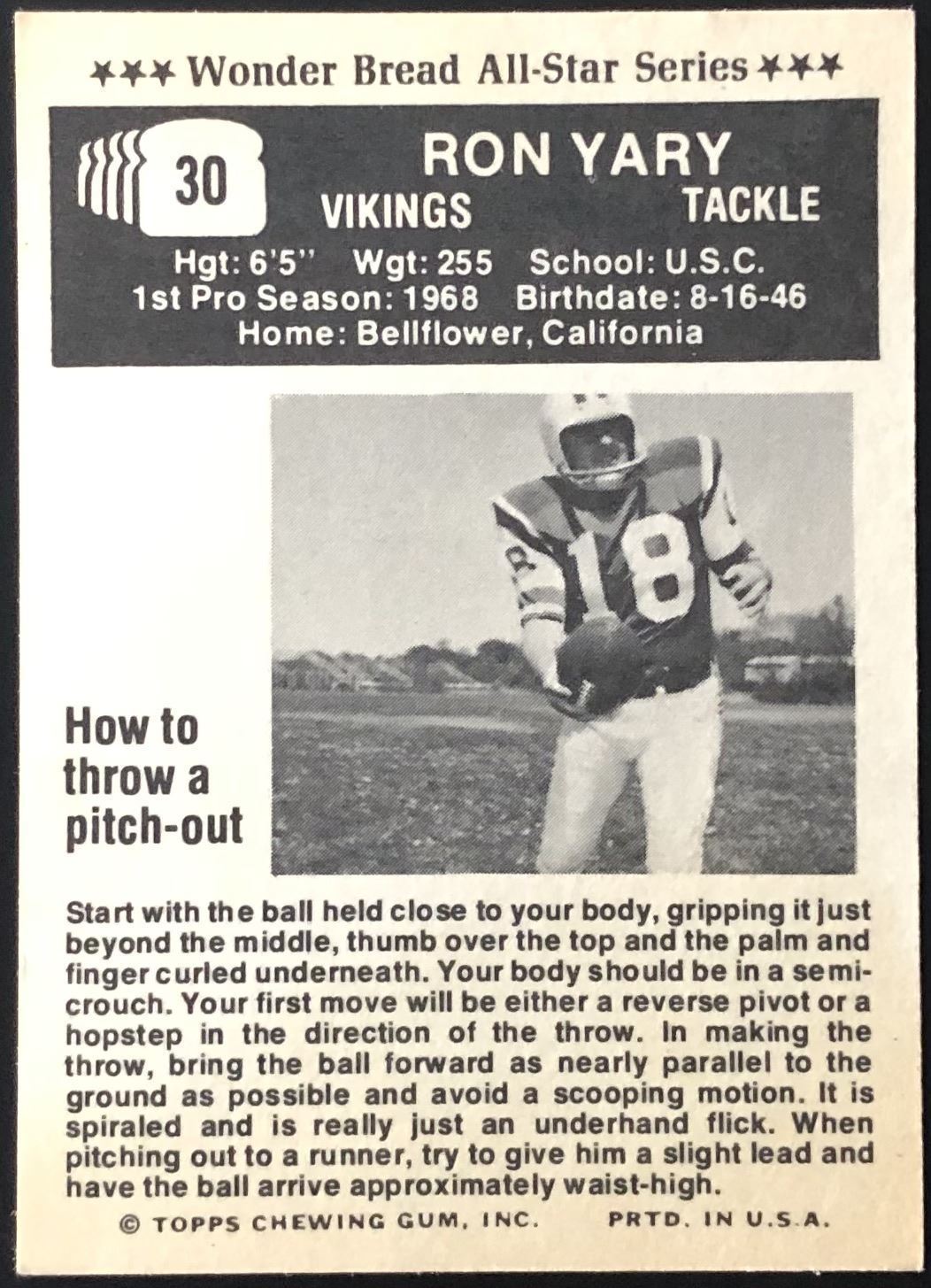 Lot 523 1974 TOPPS WONDER BREAD RON YARY (HOF)