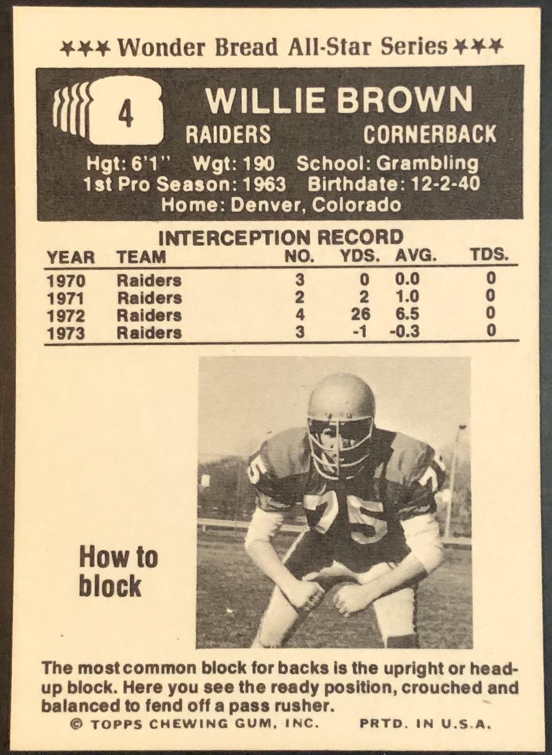 Lot 524 1974 TOPPS WONDER BREAD WILLIE BROWN (HOF)