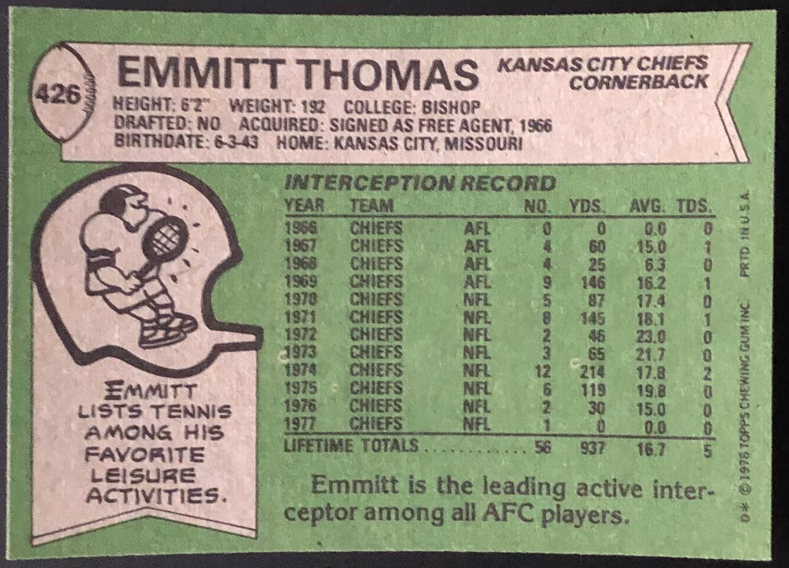 Lot 533 1978 TOPPS EMMITT THOMAS (HOF)