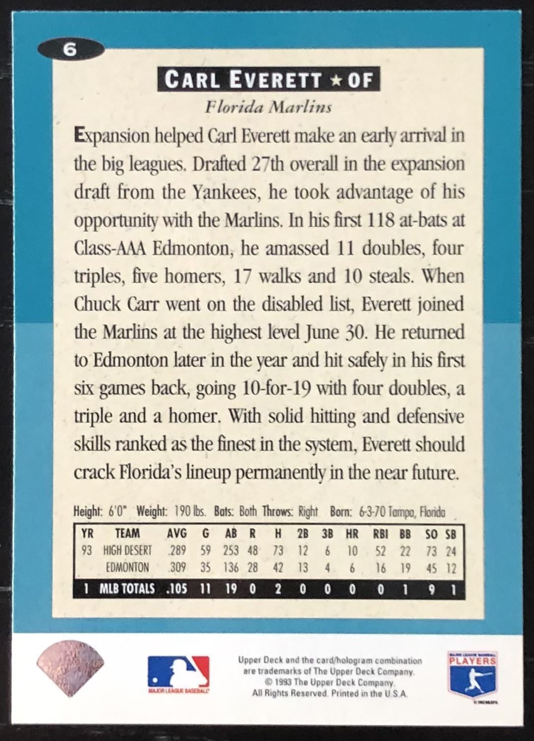 Lot 609 1994 UPPER DECK CARL EVERETT ROOKIE CARD