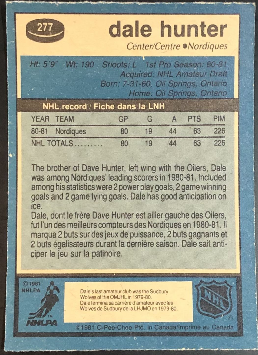 Lot 629 1981-82 O-PEE-CHEE DALE HUNTER ROOKIE CARD