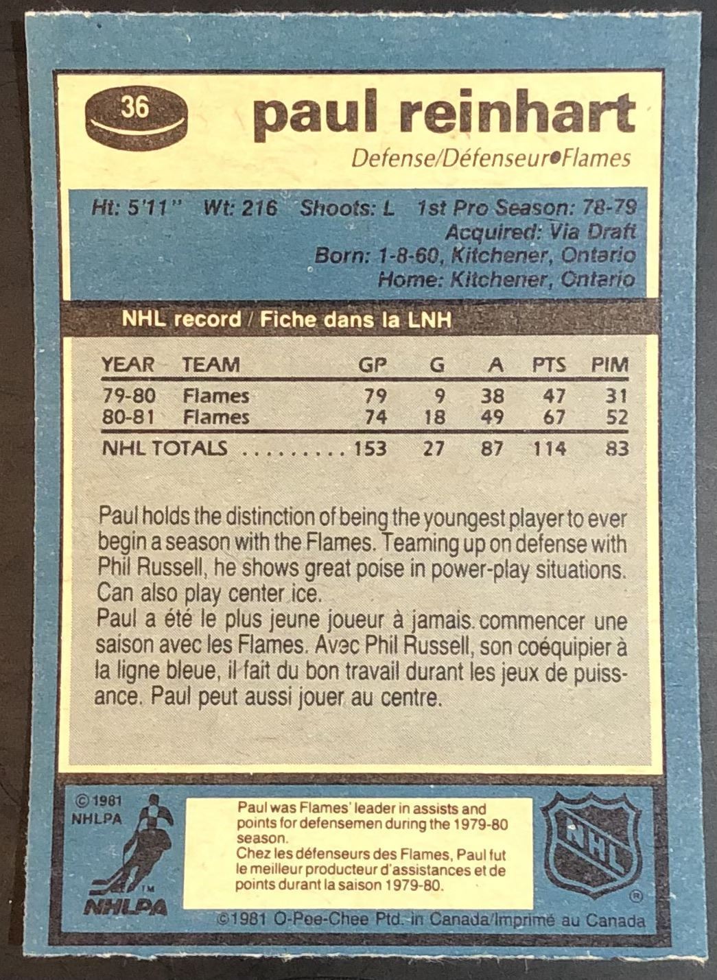 Lot 642 1981-82 O-PEE-CHEE PAUL REINHART