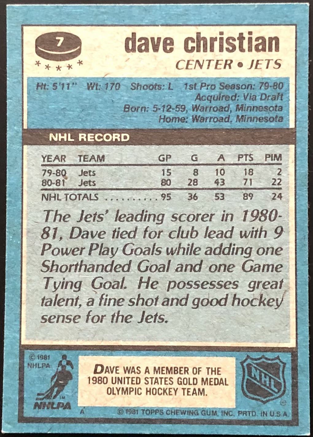 Lot 653 1981-82 TOPPS DAVE CHRISTIAN ROOKIE CARD