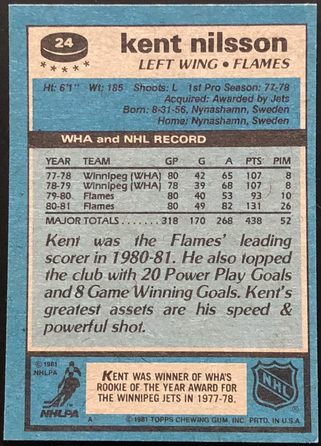 Lot 654 1981-82 TOPPS KENT NILSSON